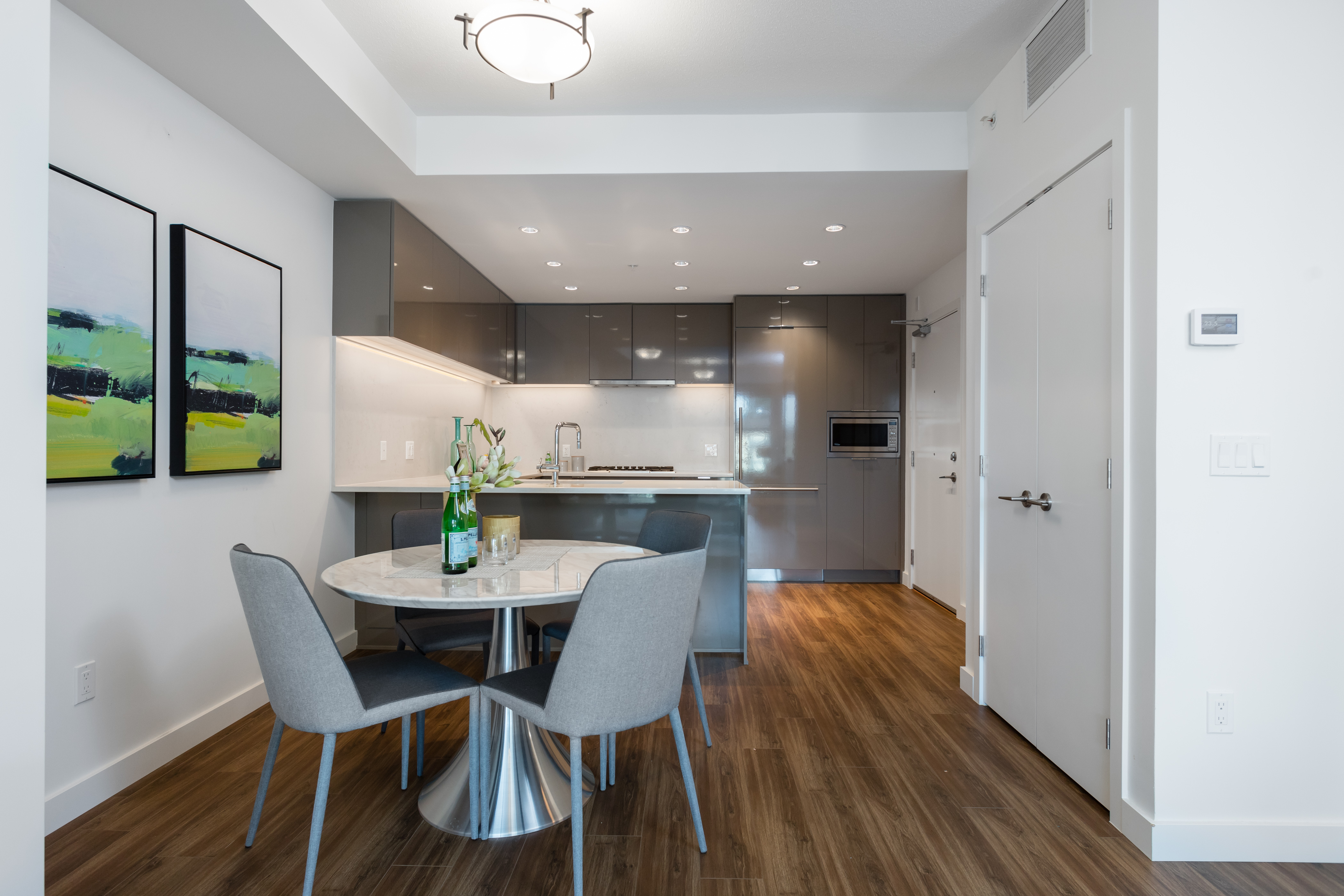 Enjoy the best of both worlds with this home being in a quiet residential neighbourhood, yet within walking distance to all the urban conveniences of the Cambie corridor. Almost Brand New, hardly lived in 2 bedroom home is Vacant and ready to move in. Home features, expansive windows & glass railings to optimized natural light, large kitchen fully integrated w/Bosch SS appliances, 5 burner gas cook tops, large walk-in closet, large utility closet with laundry, and air conditioning, Steps to Langara Golf Course, Winona Park, Cineplex, T&T, shopping, sky train, etc. Catchment of Winston Churchill Secondary. 15min to UBC!