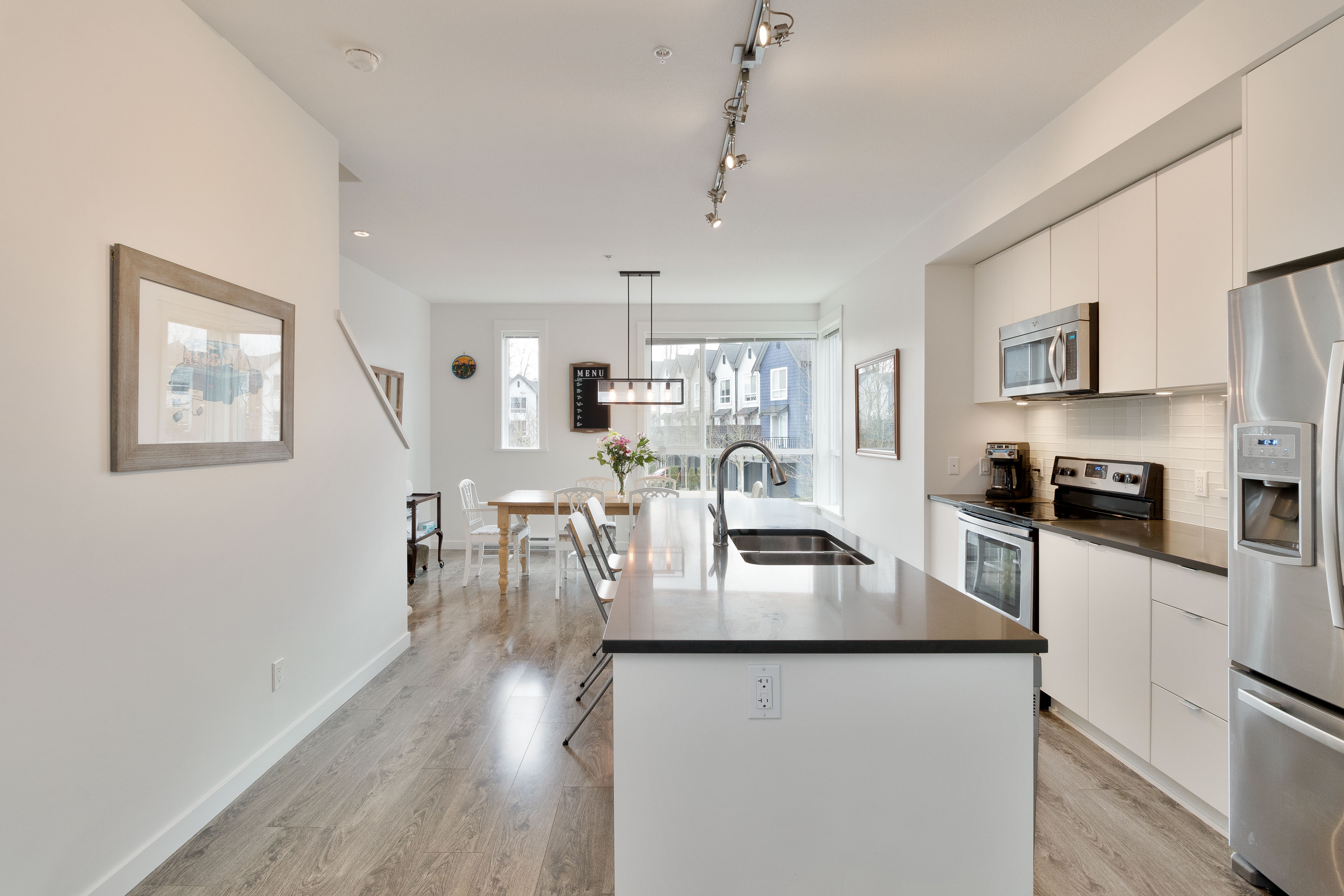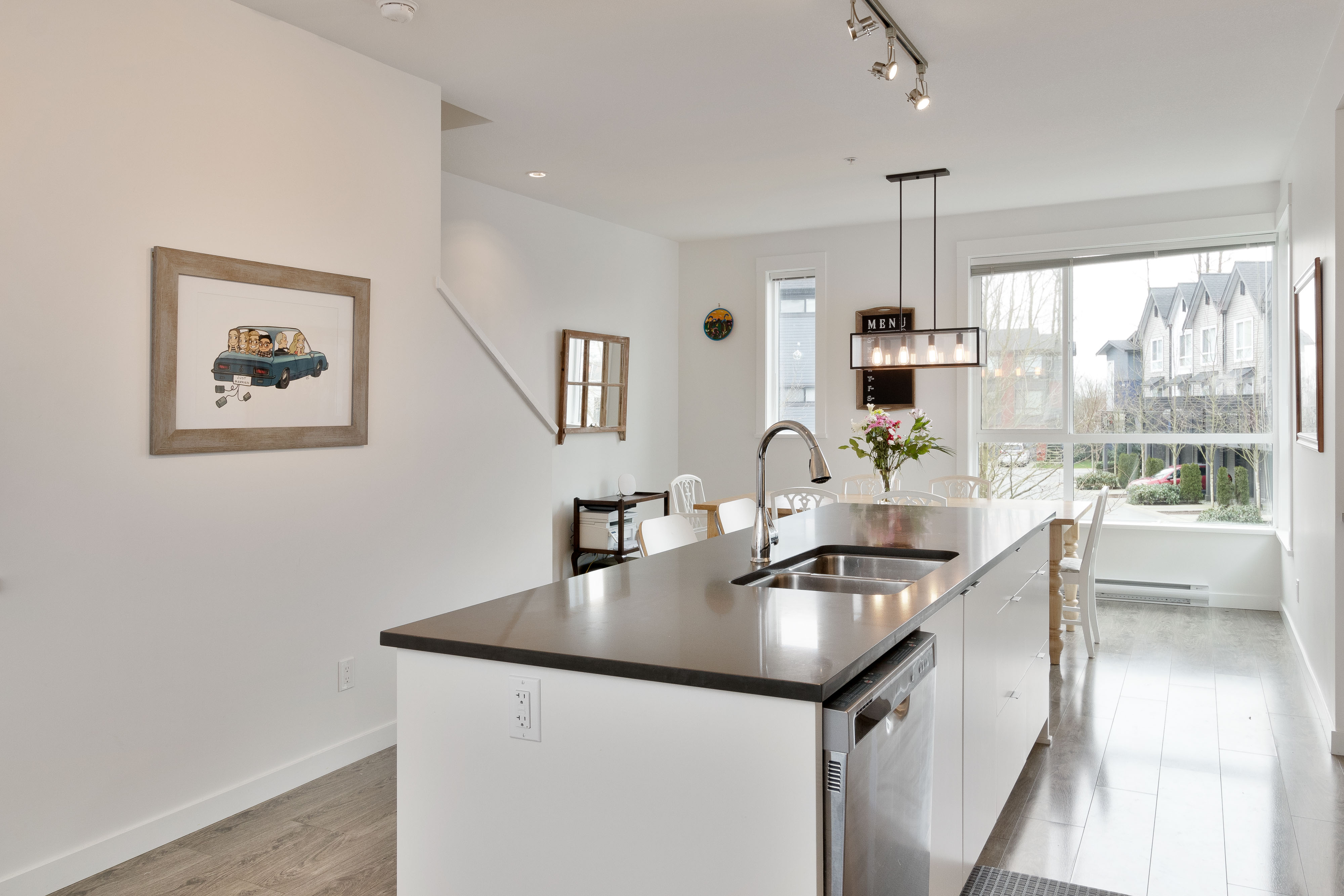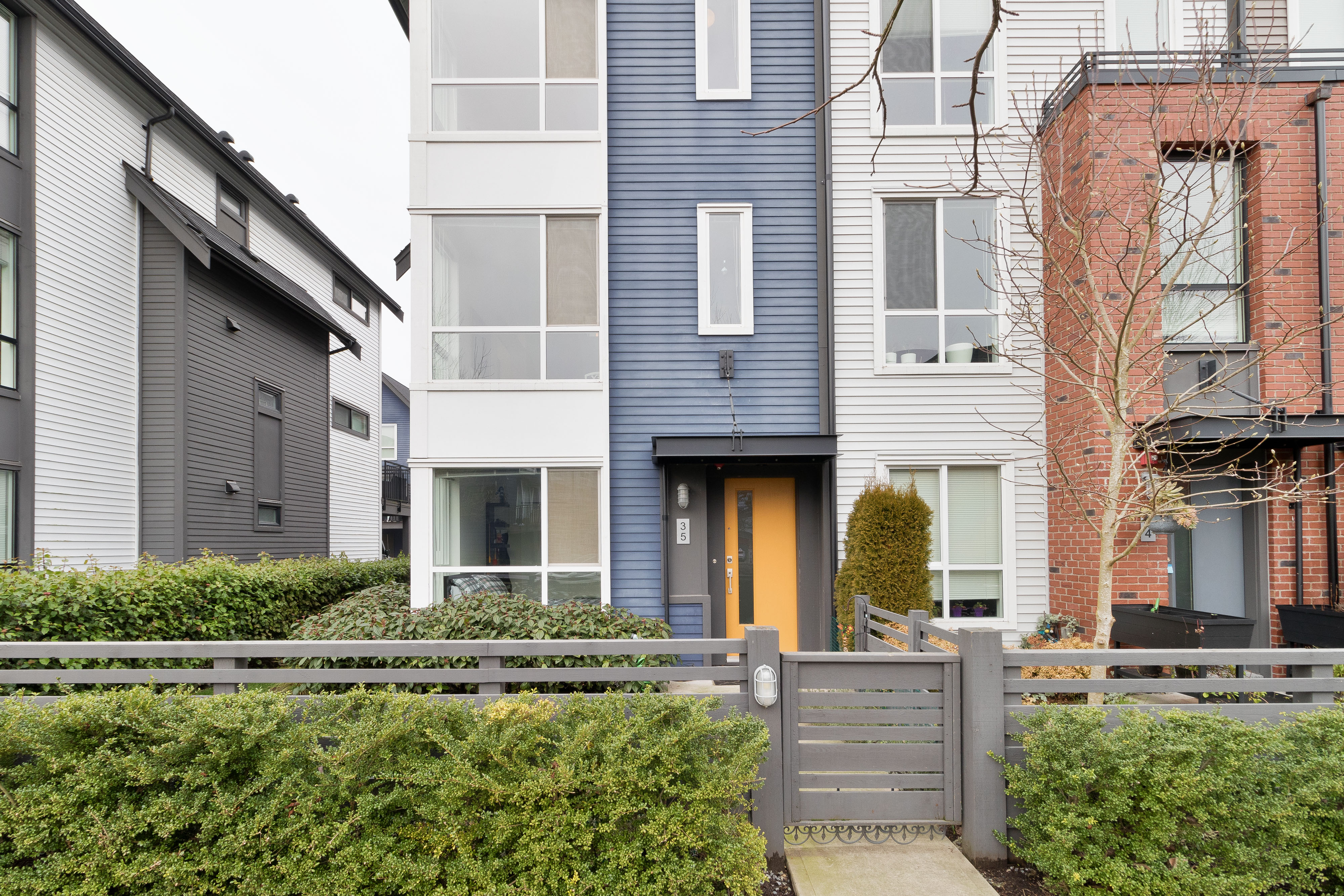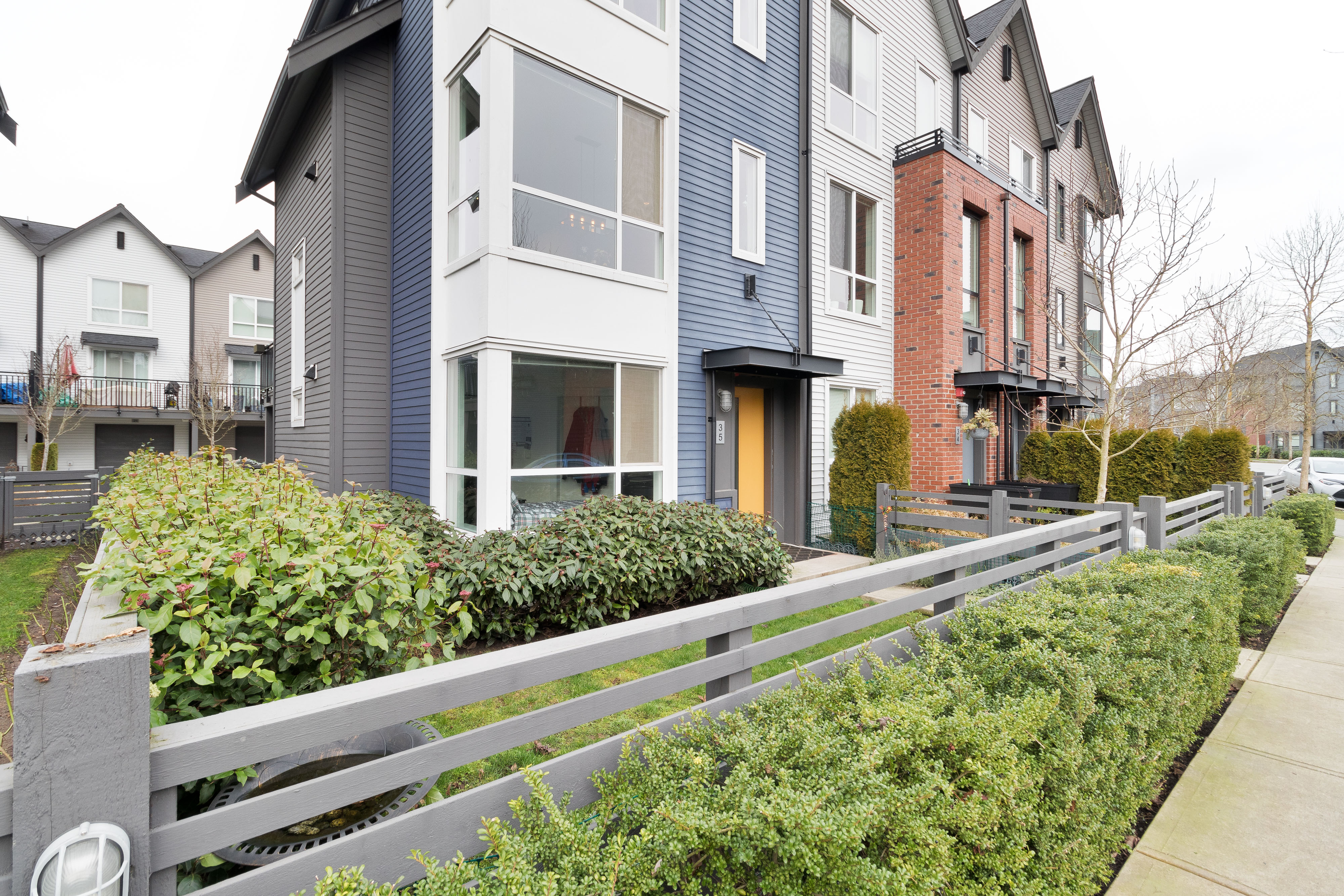 Fremont Blue 2! Enjoy the best of both worlds with this home being in a quiet setting in the popular Riverfront District, yet within walking distance to all the urban conveniences of Fremont Village. Lovingly cared for Corner Unit with 2 bedroom +Den which can be a 3rd bedroom! Ground floor featuring large bright room with closet, perfect for play, live or work. Home Features: corner wrap around windows that stream in natural light, centre island kitchen, full width deck, private wrap around fenced yard. Resort style Riverclub amenities offers lounge, pool, gym, and community garden! Adjacent to shores of Pitt River and 25km of walking, running & cycling on the Traboulay Trail. Walking distance to Walmart, Costco, other big box stores, major banks! Quick acce