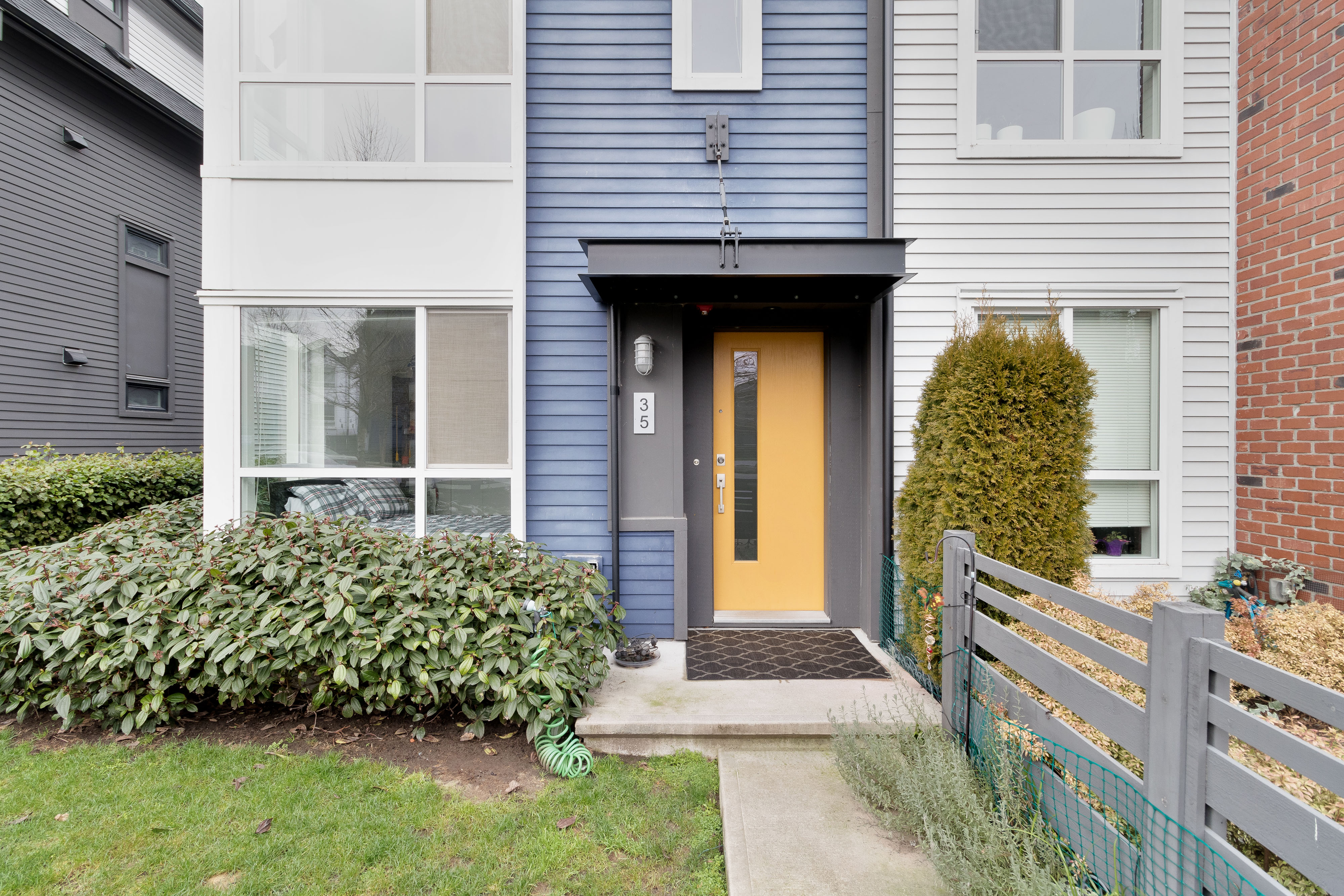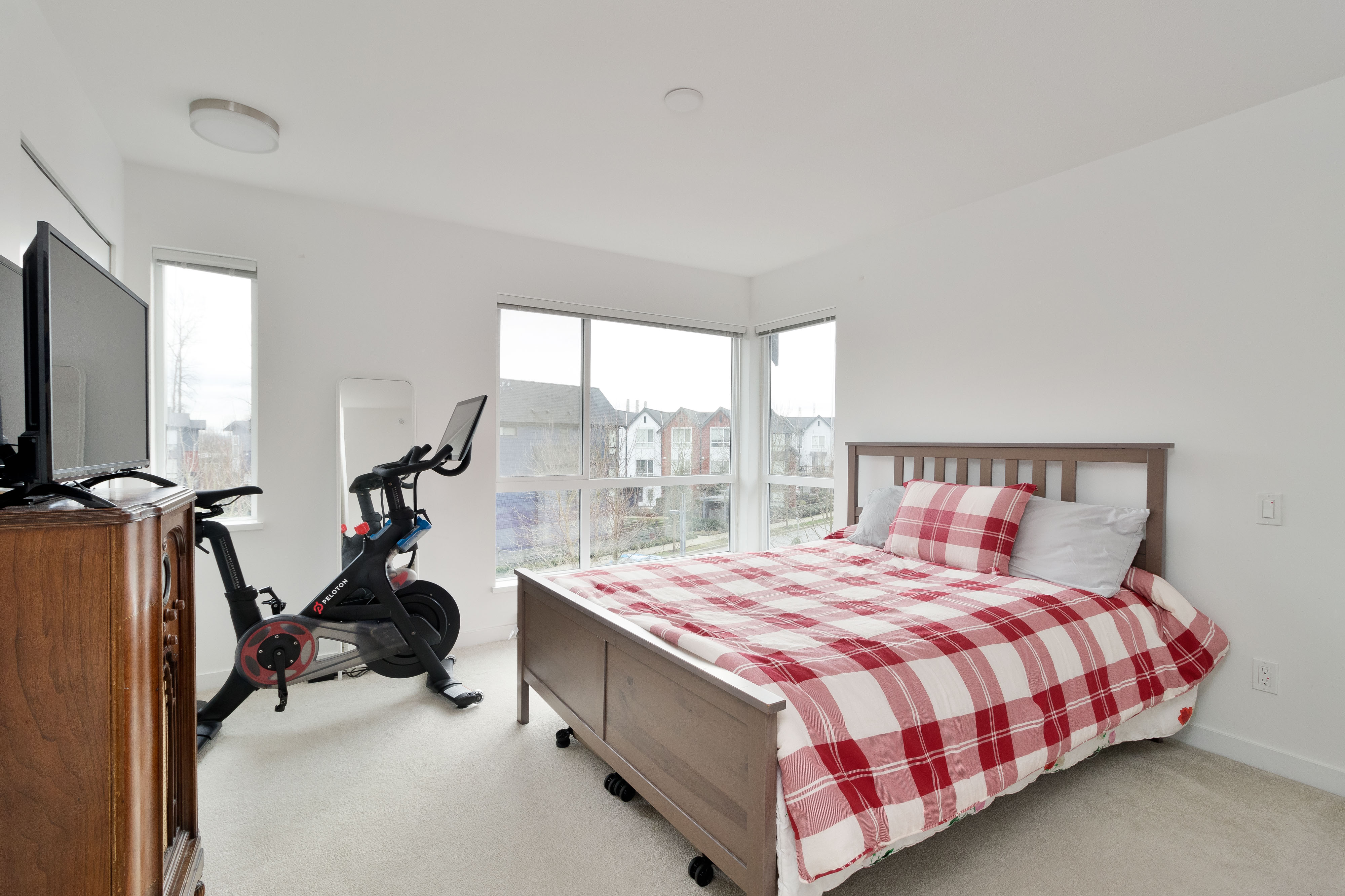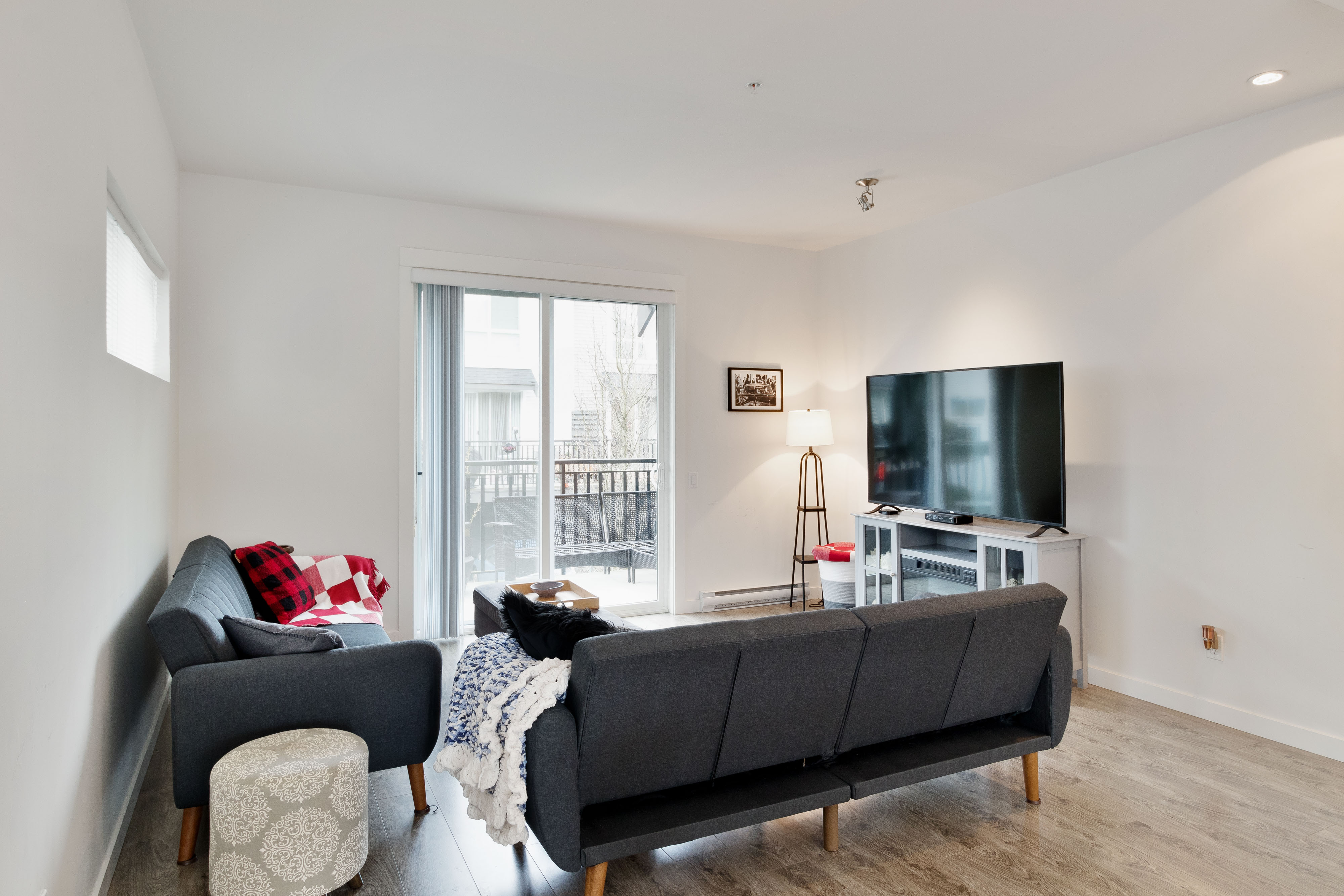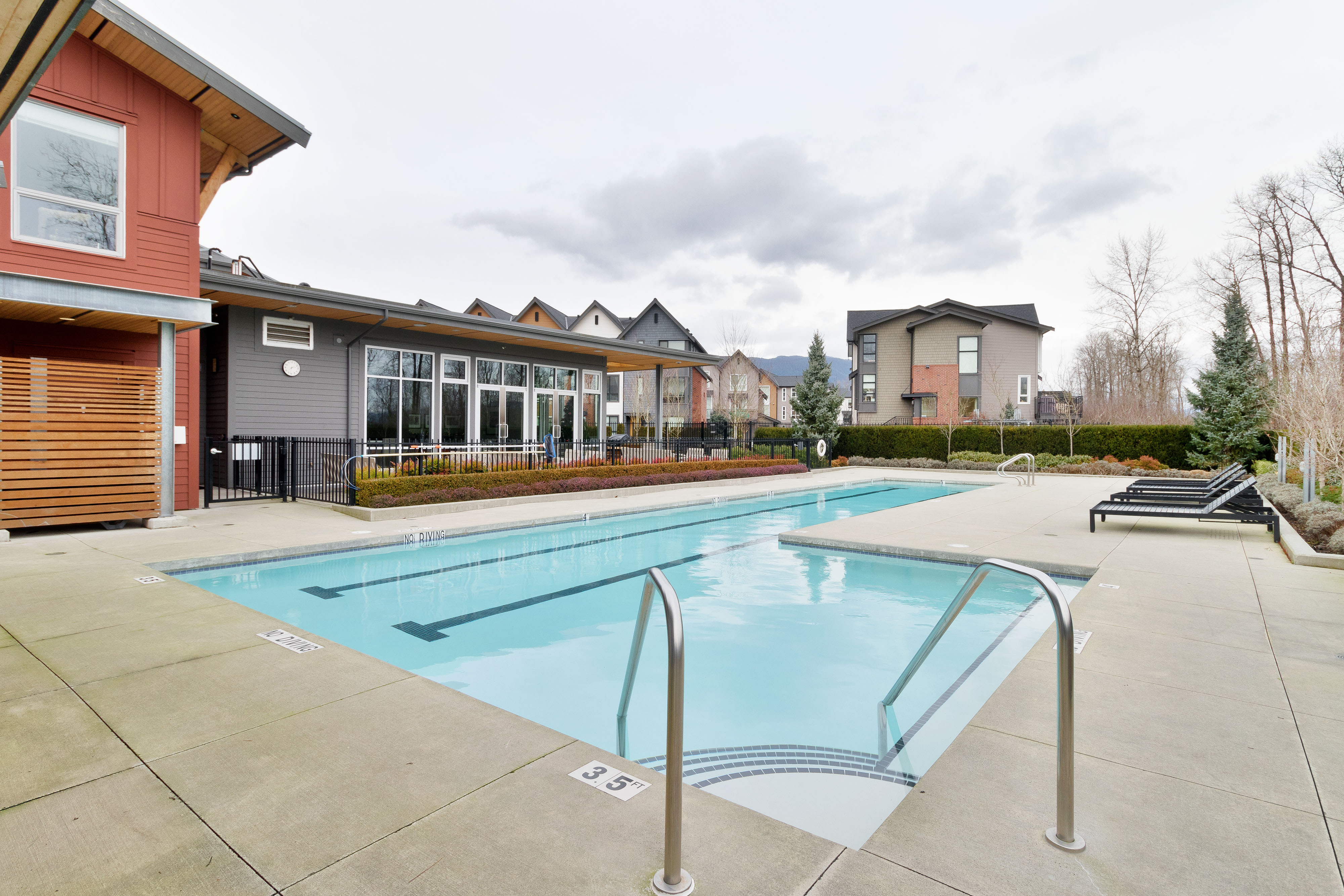 Fremont Blue 2! Enjoy the best of both worlds with this home being in a quiet setting in the popular Riverfront District, yet within walking distance to all the urban conveniences of Fremont Village. Lovingly cared for Corner Unit with 2 bedroom +Den which can be a 3rd bedroom! Ground floor featuring large bright room with closet, perfect for play, live or work. Home Features: corner wrap around windows that stream in natural light, centre island kitchen, full width deck, private wrap around fenced yard. Resort style Riverclub amenities offers lounge, pool, gym, and community garden! Adjacent to shores of Pitt River and 25km of walking, running & cycling on the Traboulay Trail. Walking distance to Walmart, Costco, other big box stores, major banks! Quick acce
