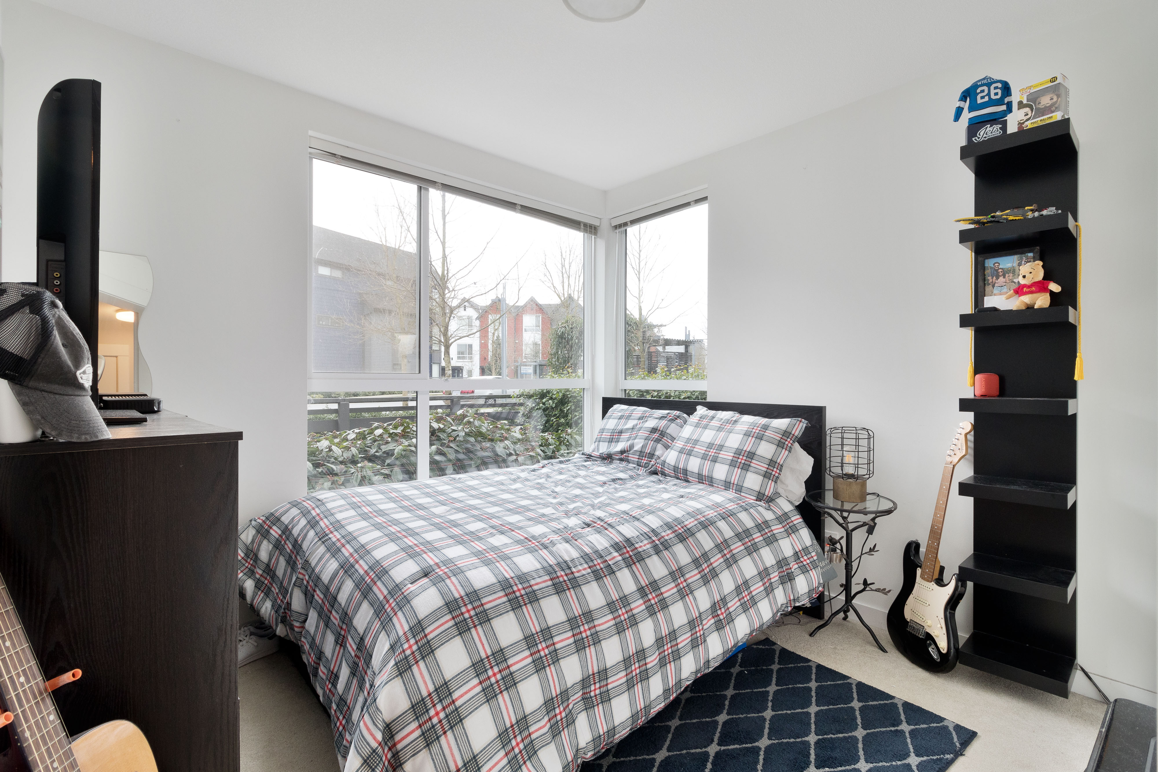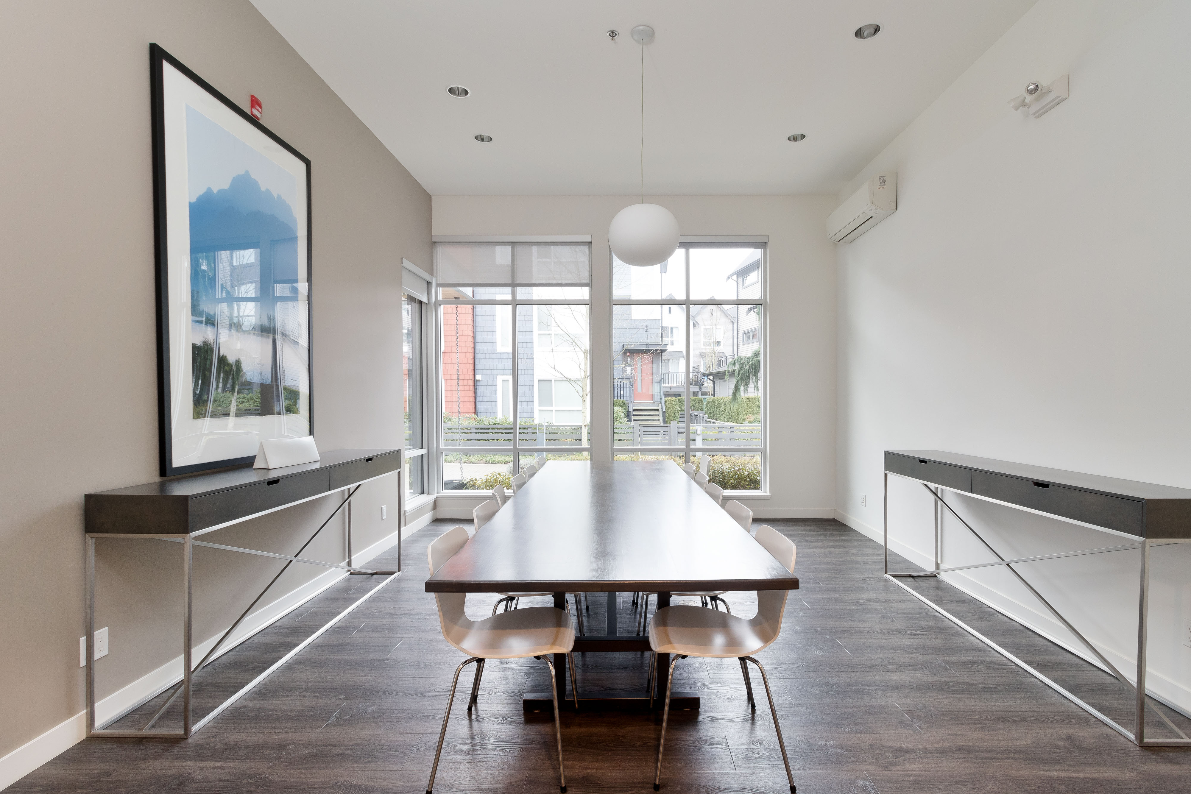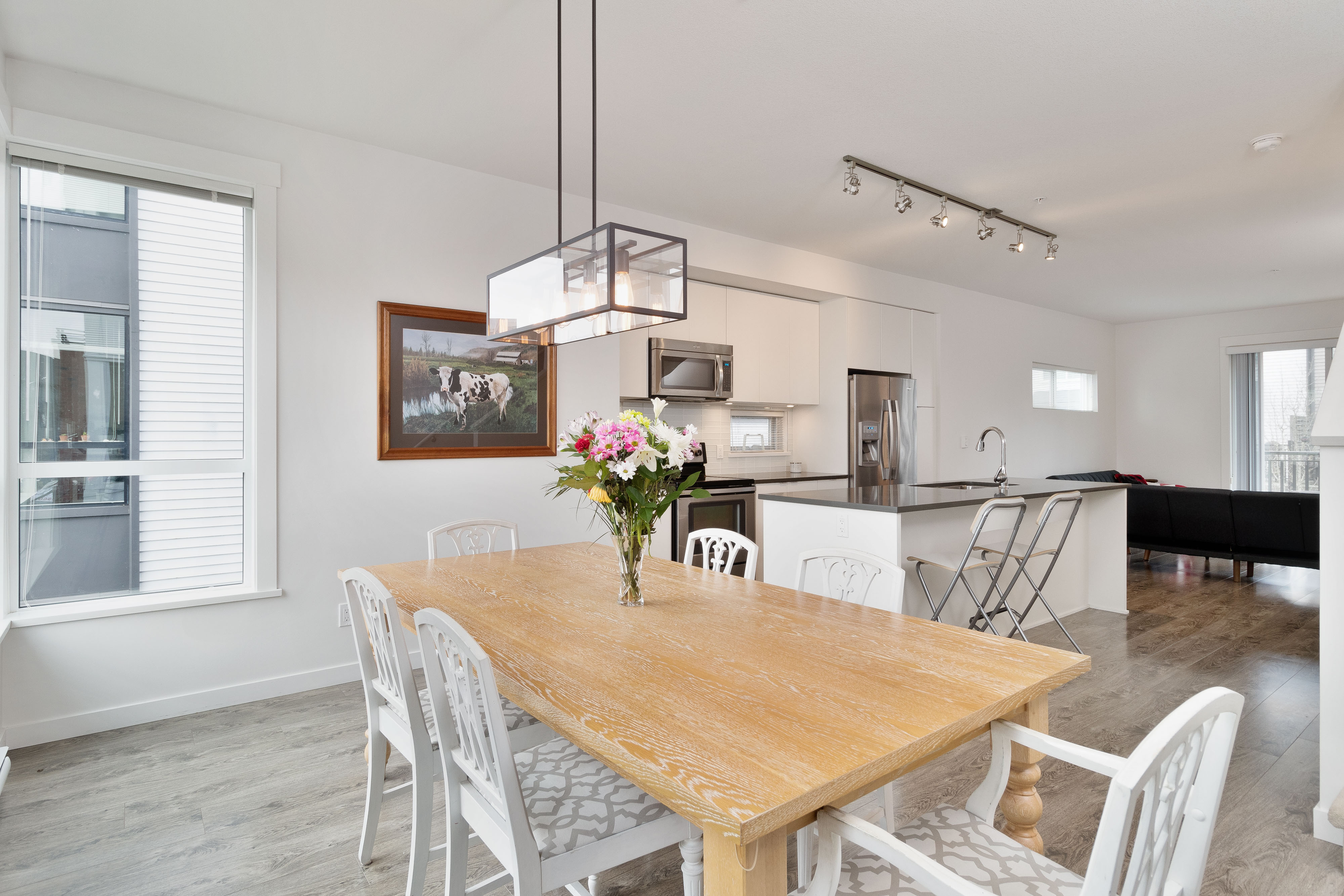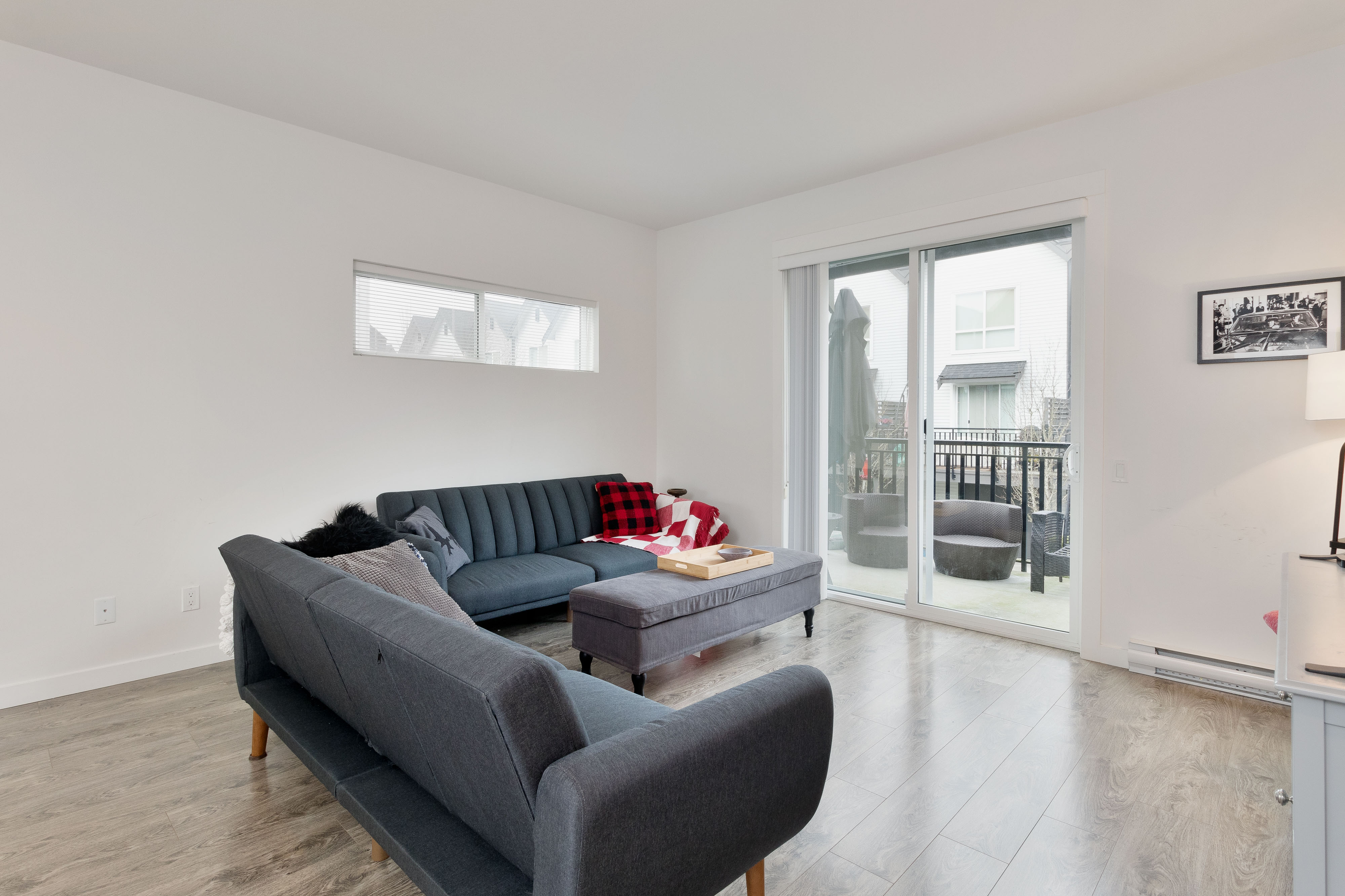 Fremont Blue 2! Enjoy the best of both worlds with this home being in a quiet setting in the popular Riverfront District, yet within walking distance to all the urban conveniences of Fremont Village. Lovingly cared for Corner Unit with 2 bedroom +Den which can be a 3rd bedroom! Ground floor featuring large bright room with closet, perfect for play, live or work. Home Features: corner wrap around windows that stream in natural light, centre island kitchen, full width deck, private wrap around fenced yard. Resort style Riverclub amenities offers lounge, pool, gym, and community garden! Adjacent to shores of Pitt River and 25km of walking, running & cycling on the Traboulay Trail. Walking distance to Walmart, Costco, other big box stores, major banks! Quick acce