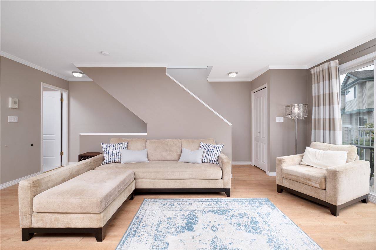Ready to Move In, Bright & Updated spacious 3 bdrm townhome in popular Hamilton Area! Updates include: newer paint, German engineered laminate (2014), stainless steel appliances (2016), new washer and dryer (2019), trendy kitchen backsplash and counter with s/s undermount sink, new garburator (2019), new blinds and window coverings (2016), Hot water tank (2018). Home features: 3 bdrms up, powder room on the main floor and a spacious Den on the lower floor which can be used as 4th bdrm. Skylights create a brighter space upstairs. Nice fenced patio garden and balcony. Side by side double garage and lots of visitor parking. Easy access to Richmond, Vancouver, Burnaby. Short drive to Walmart and outlets. 5 min walk to Hamilton Elementary. McNair Secondary. 2 pets Welcome. Rentals Welcome!