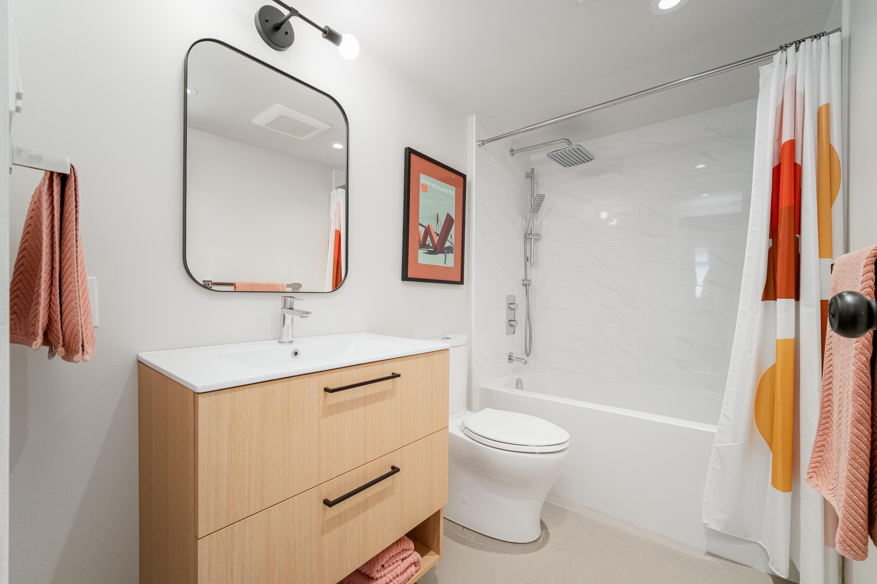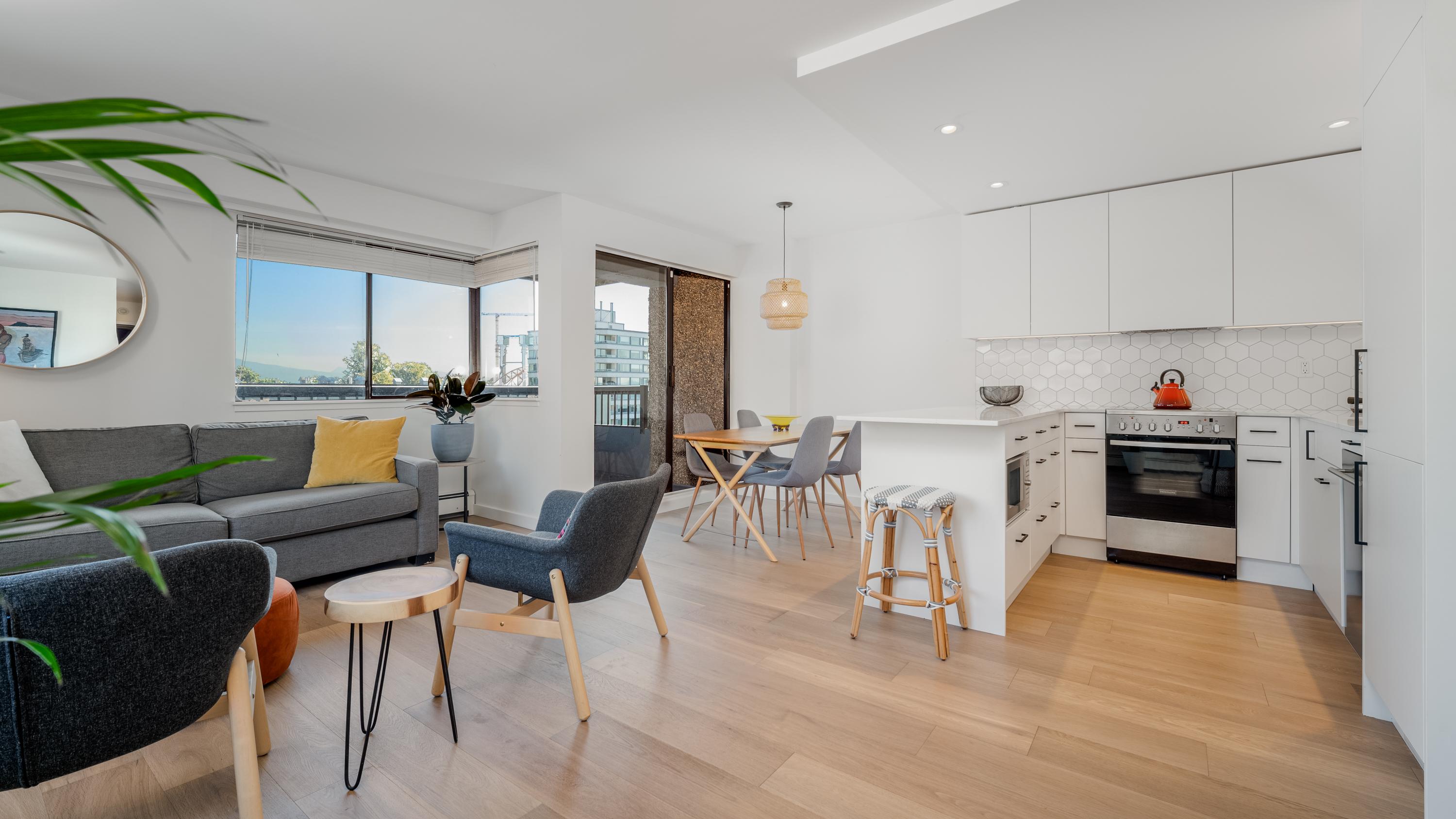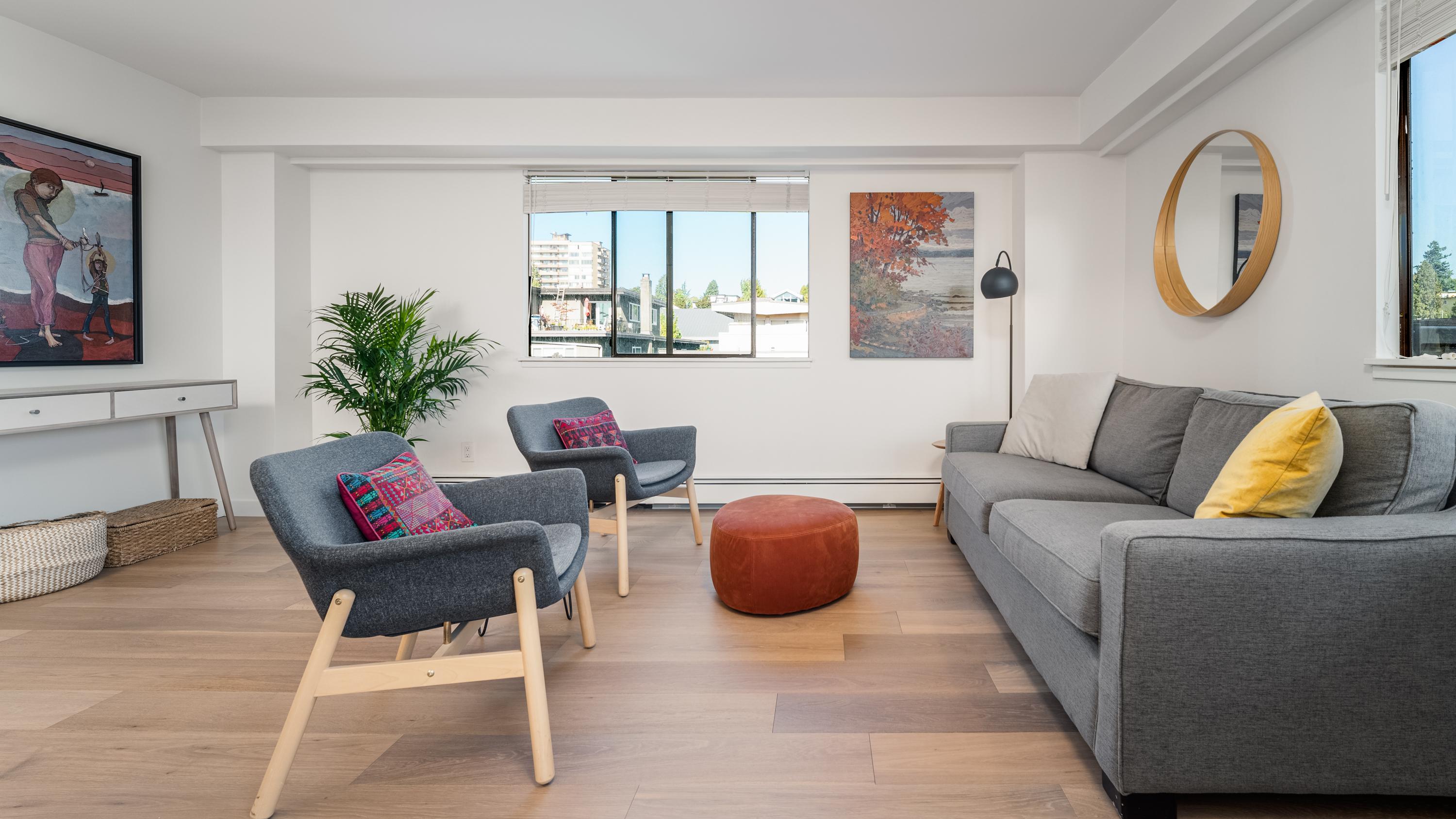 Not your ordinary 1 bedroom Condo! Walk in to a perfect modern contemporary transformation of this 2 bedroom condo built in 1976. Enjoy the space and the open bright layout juxtaposed with modern look and design. Beautiful Easterly mountain and water views can be enjoyed from the open kitchen, dining room and the wrap around balcony. Bonus: Heat & Hot Water included in the strata fee