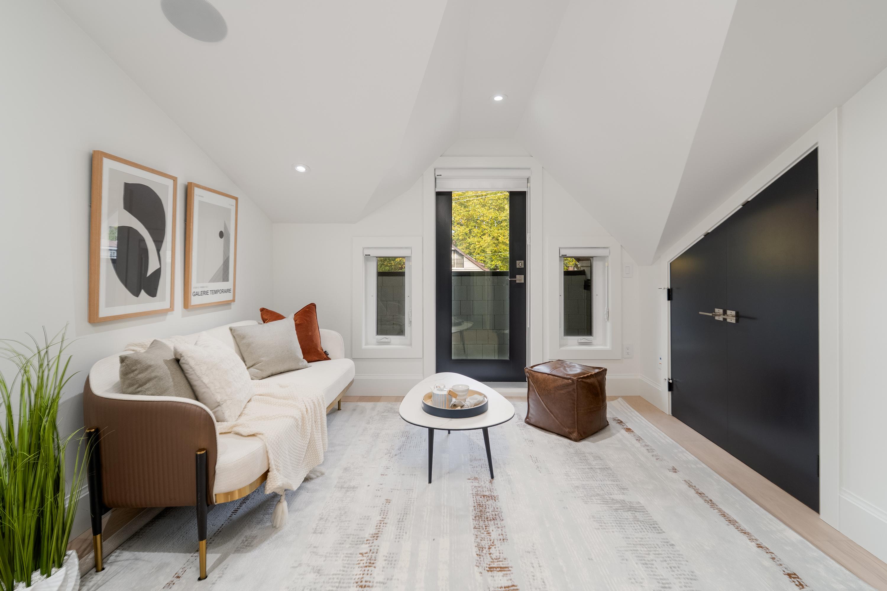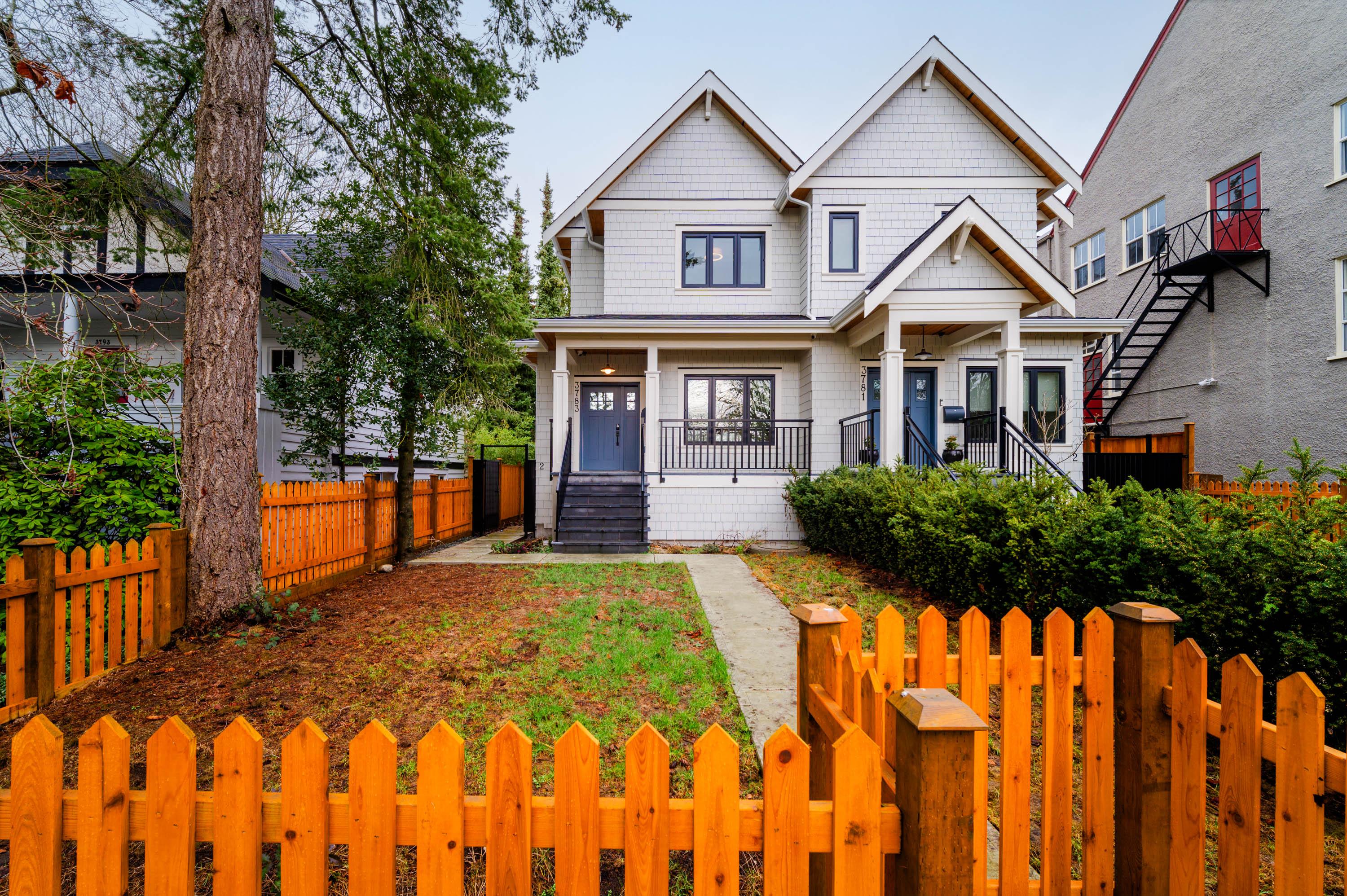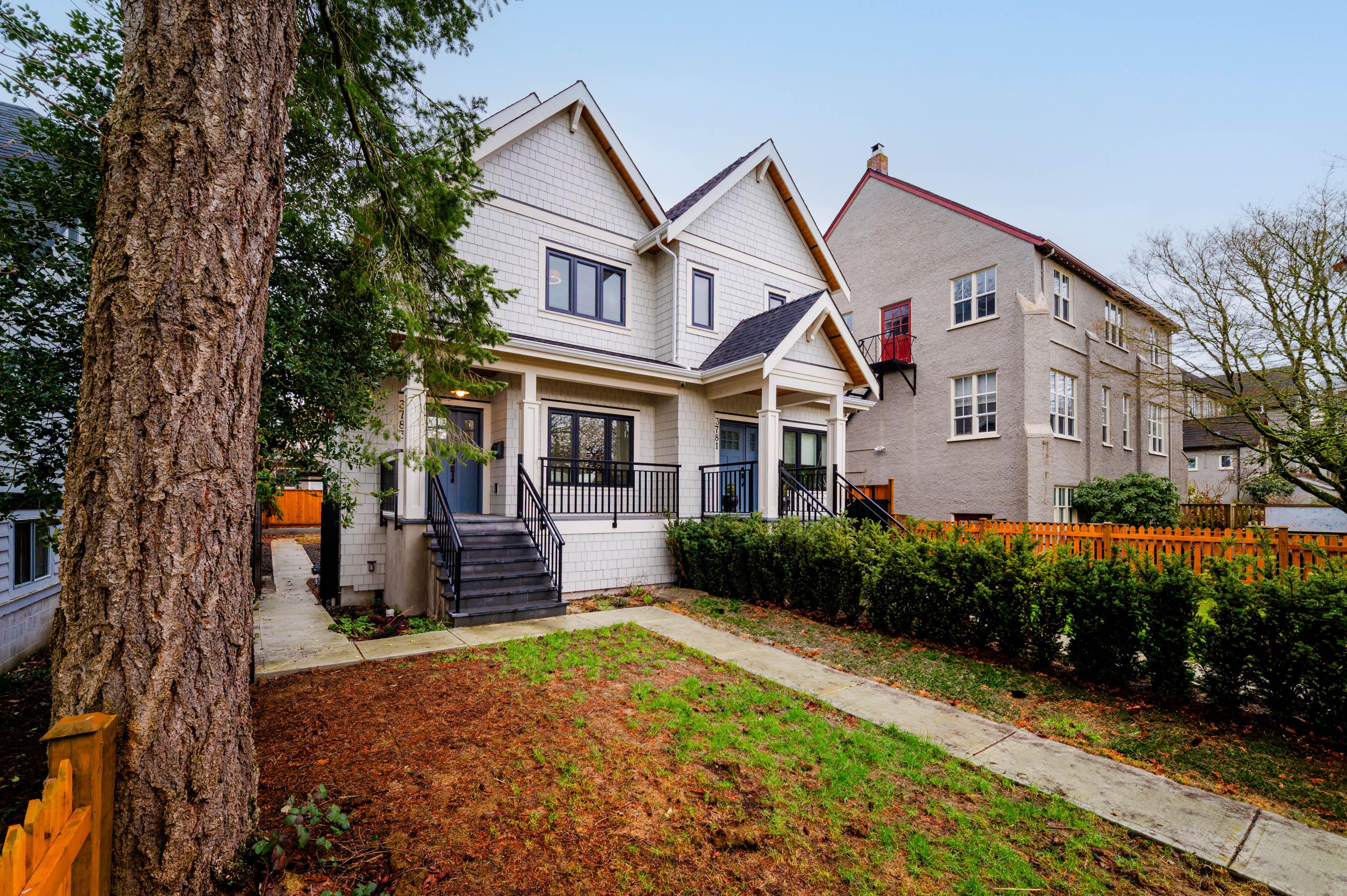 Brand New Luxury 5 bedroom 1/2 Duplex home in prestigious Dunbar area. This 5 bedroom, home features beautiful and functional and bright layout and creative interior design by Jackie Taggart Design, using modern style finishes, details, lighting, materials, hardware, backsplash, tiles and flooring! Kitchen features fully integrated appliances, large island with seating, and 2 tone cabinetry and custom hardware, lighting, Miele gas stove cooktop. Home features a 3 bedrooms plus loft above and a large 1 bedroom suite perfect for a nanay suite, in-laws or rental! Ditch the car at home and walk to all the shopping and restaurants along Dunbar St, including Stongs Market; Chaldecott Park, transit, St. George's Junior School, Crown Preschool!