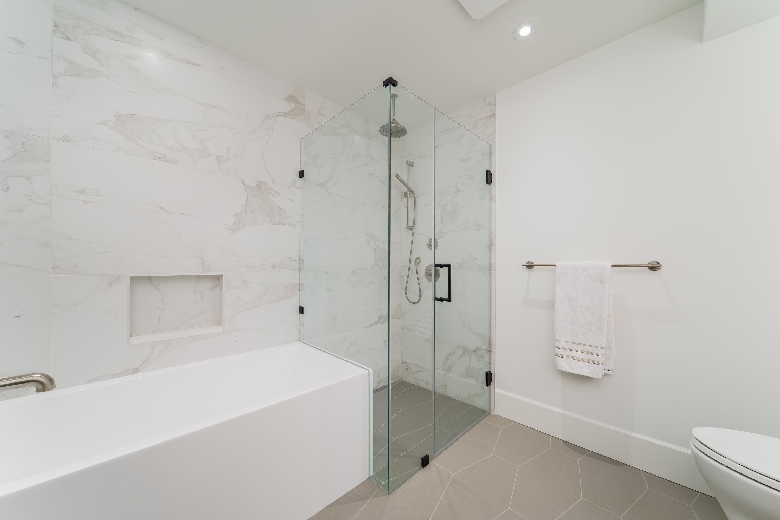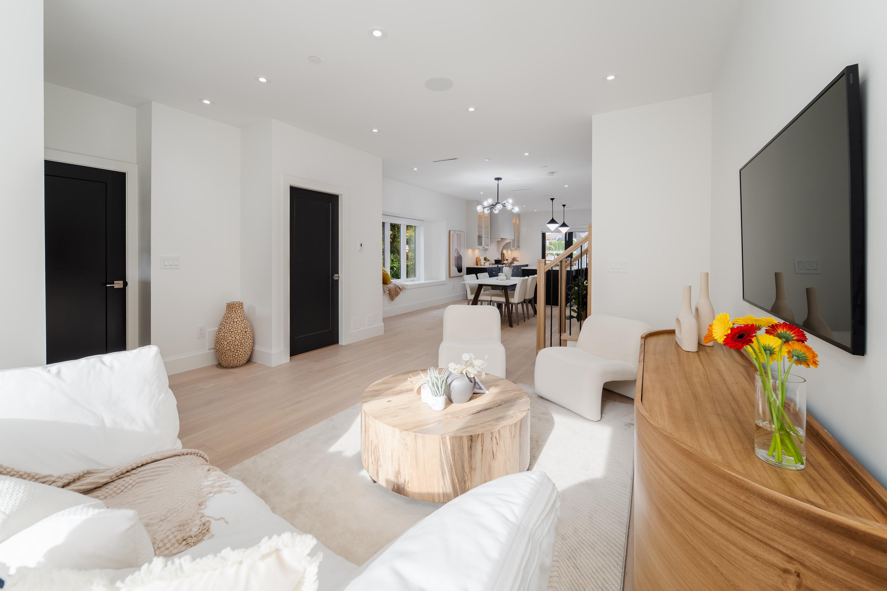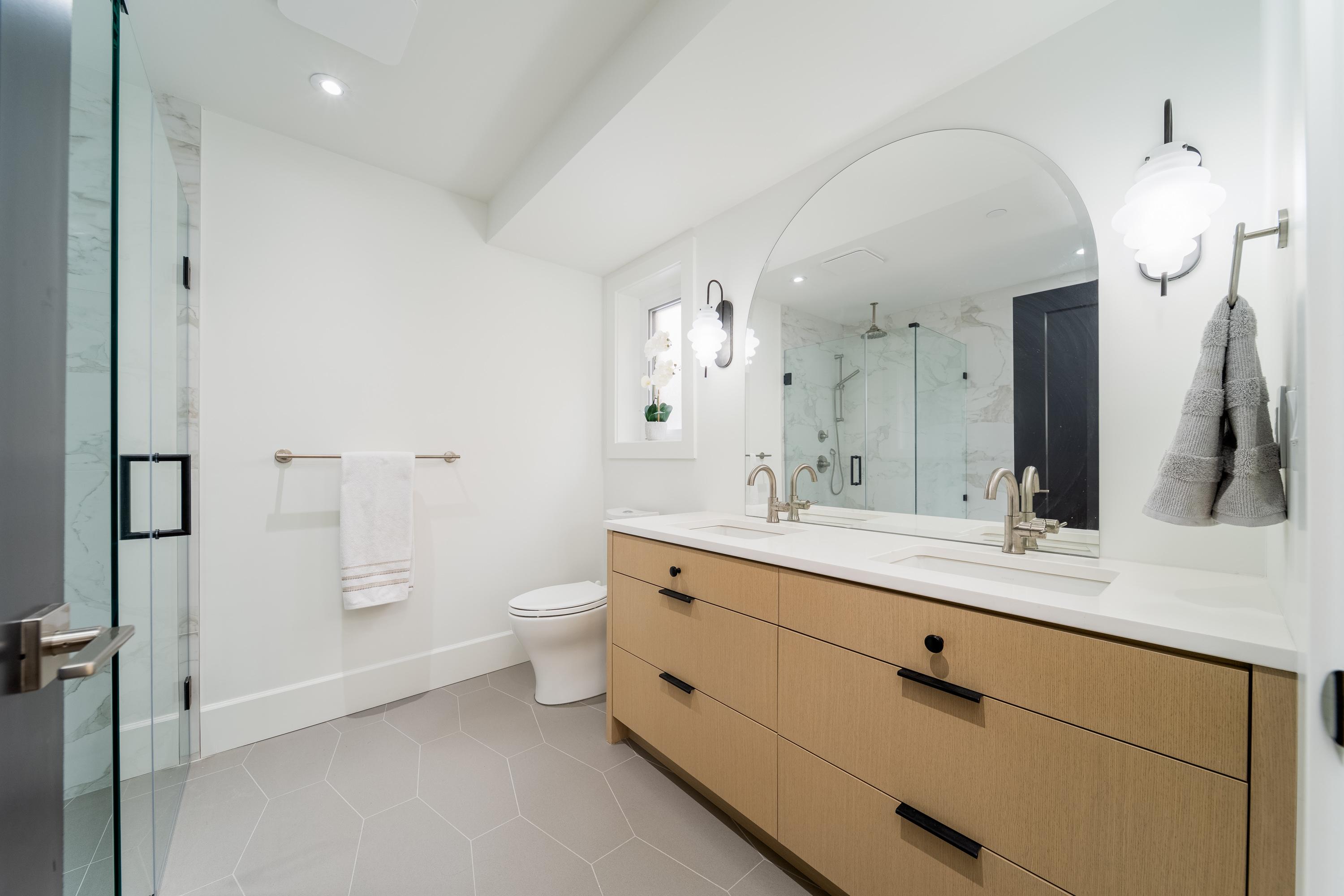 Brand New Luxury 5 bedroom 1/2 Duplex home in prestigious Dunbar area. This 5 bedroom, home features beautiful and functional and bright layout and creative interior design by Jackie Taggart Design, using modern style finishes, details, lighting, materials, hardware, backsplash, tiles and flooring! Kitchen features fully integrated appliances, large island with seating, and 2 tone cabinetry and custom hardware, lighting, Miele gas stove cooktop. Home features a 3 bedrooms plus loft above and a large 1 bedroom suite perfect for a nanay suite, in-laws or rental! Ditch the car at home and walk to all the shopping and restaurants along Dunbar St, including Stongs Market; Chaldecott Park, transit, St. George's Junior School, Crown Preschool!
