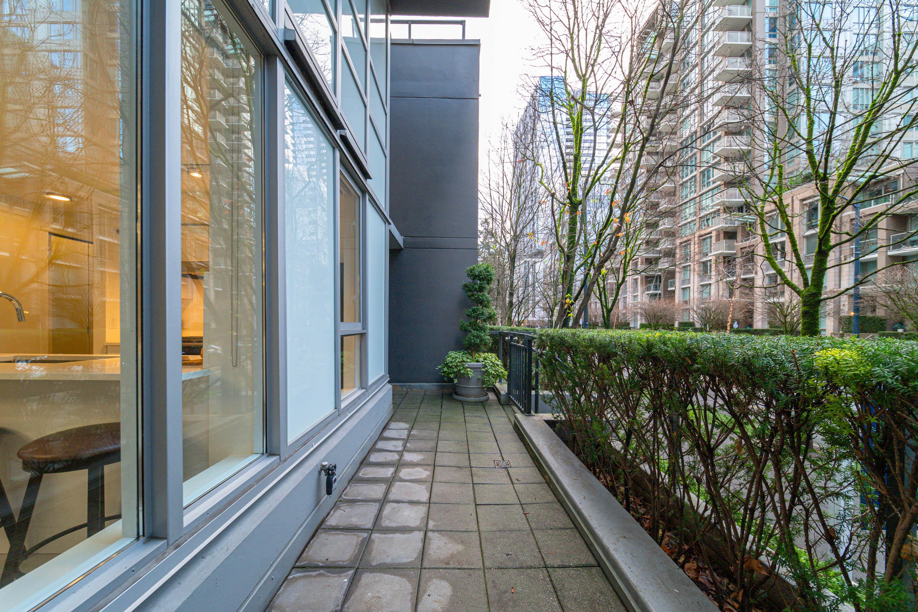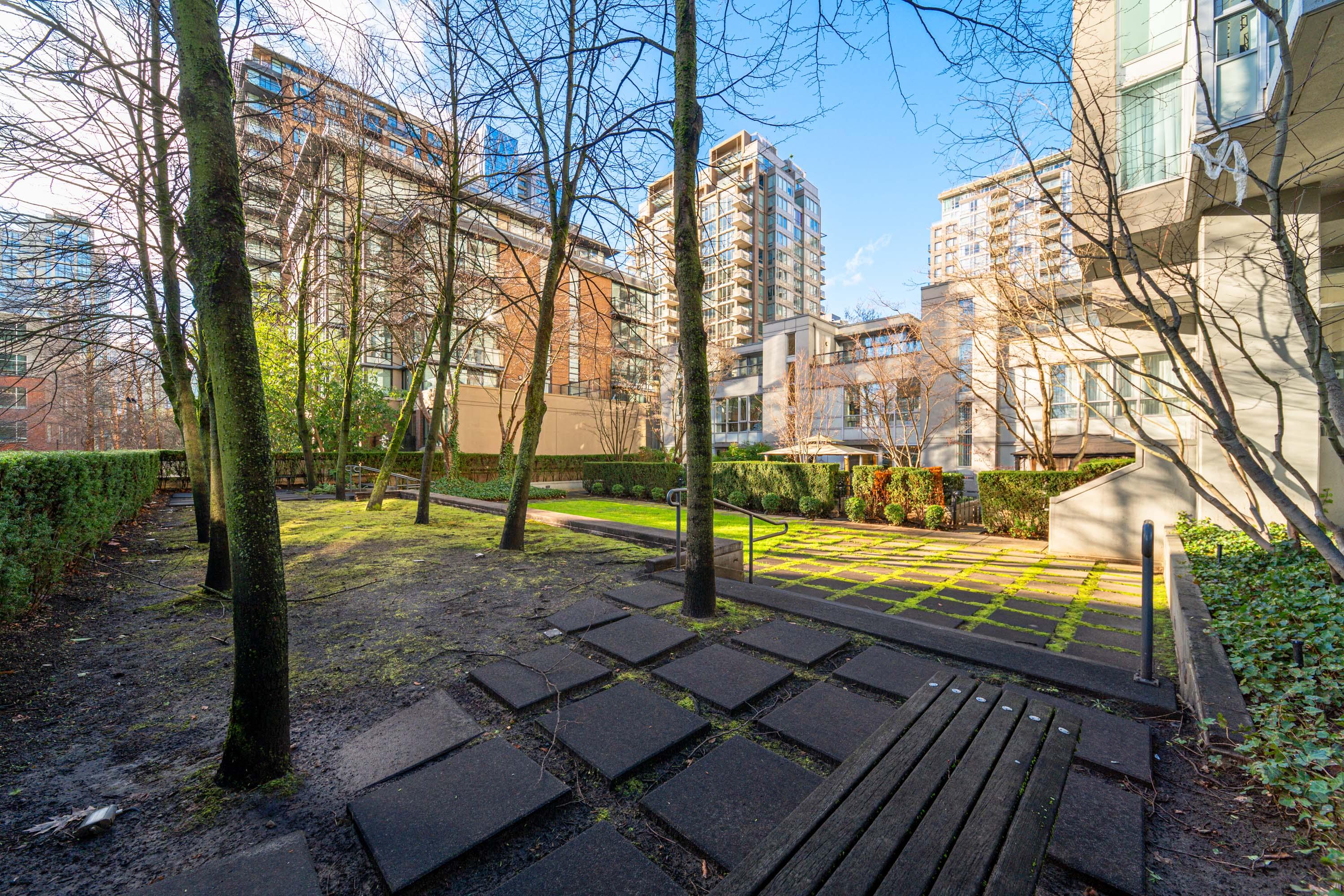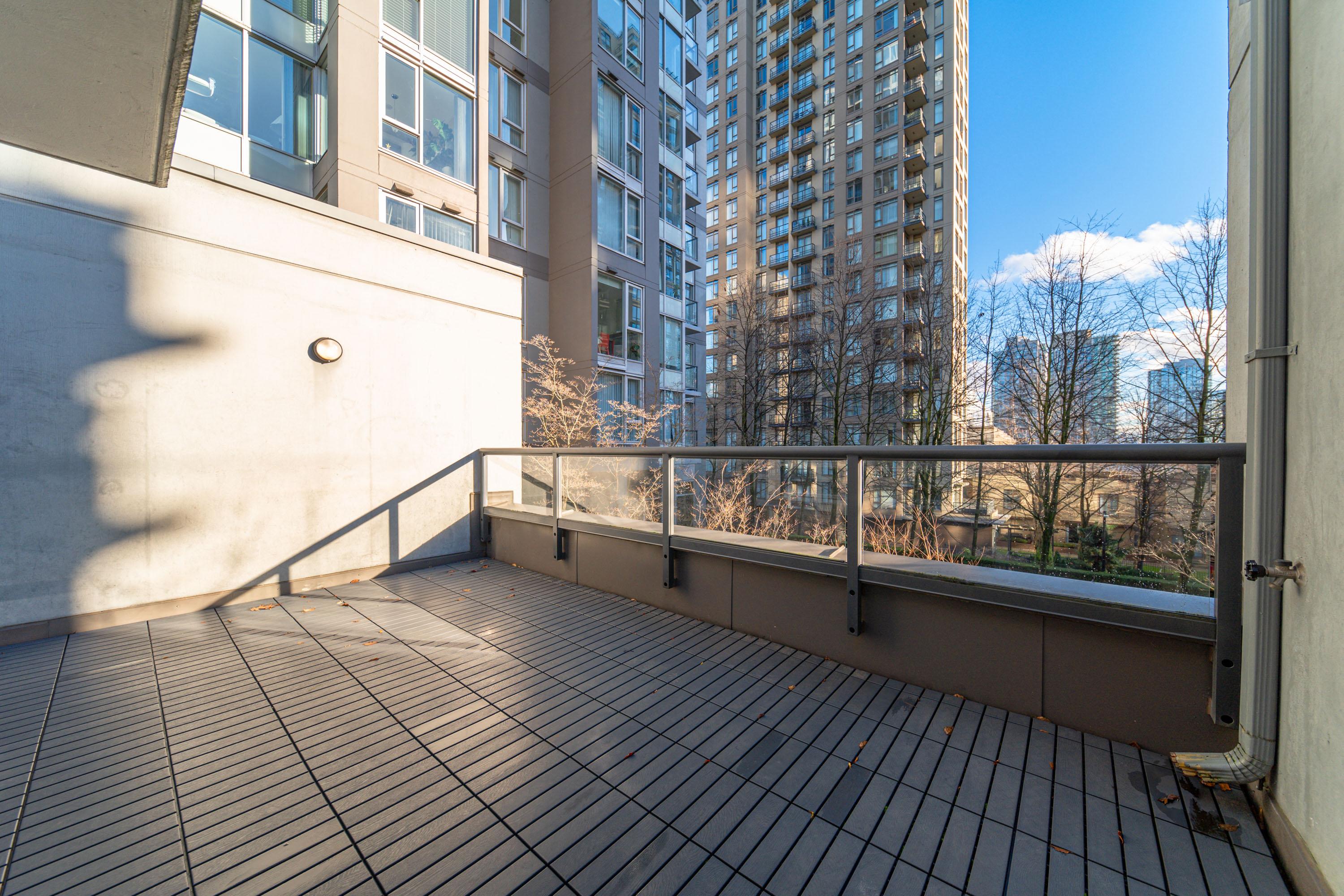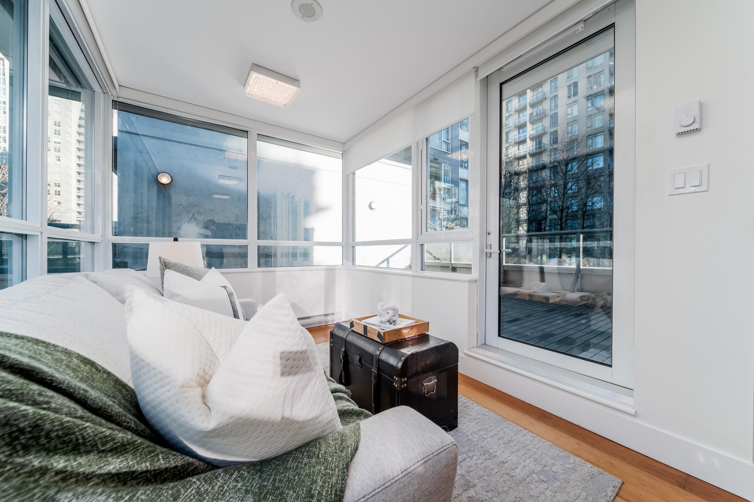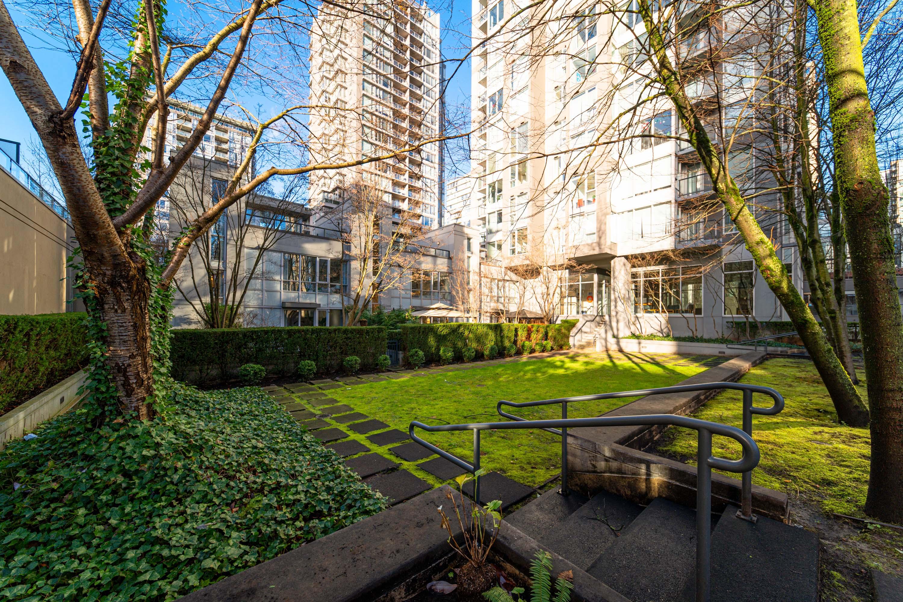 Modern Yaletown Living, Reimagined! This updated 3-level townhome combines sleek design with inviting warmth. Enjoy polished concrete floors on the main level, hardwood upstairs, and a spacious pantry/storage nook off the living room—perfect for organization or as a functional coffee bar. The open-concept living area flows to a large private patio, connecting to a serene courtyard and the building’s hot tub room. Upstairs, find 2 bright bedrooms and a stunning glass-encased 3rd level flex space with a wrap-around deck—ideal as an office, lounge, or 3rd bedroom. A true urban retreat steps from the seawall, dining, and shopping, Nesters Groceries, Choices Market, Shoppers Drug Mart, Rogers Arena & BC Place. 1 parking & storage included. School Catchment: Crosstown Elementary & King George Sec. Pets welcome (2 dogs or 2 cats), Rentals Welcome (No Short-term rentals)