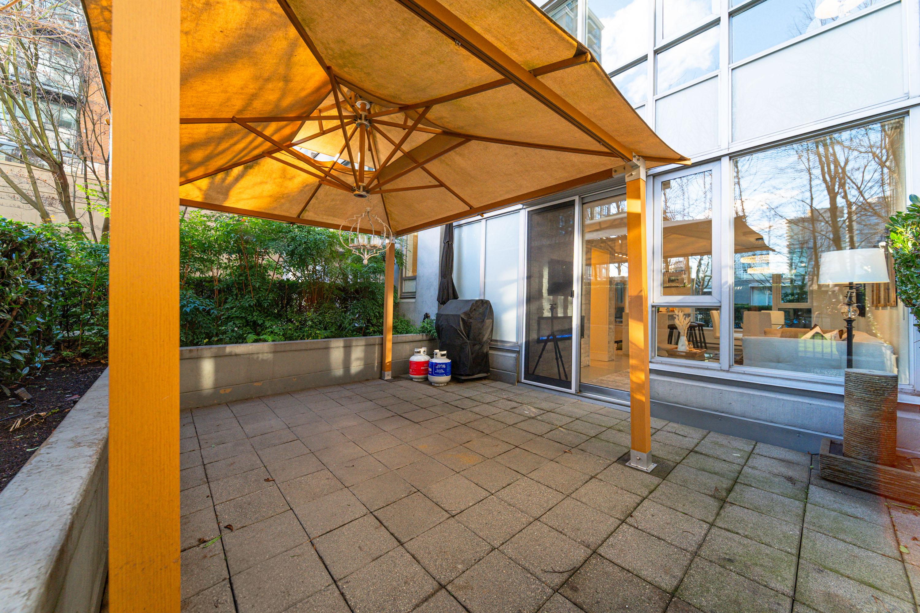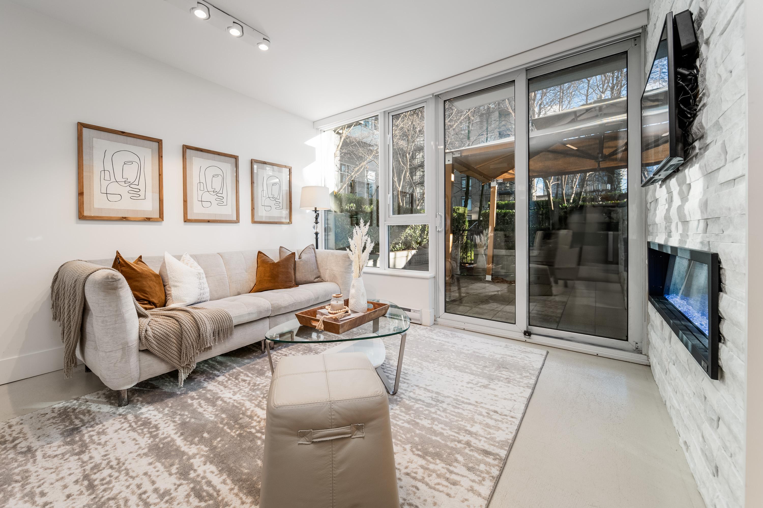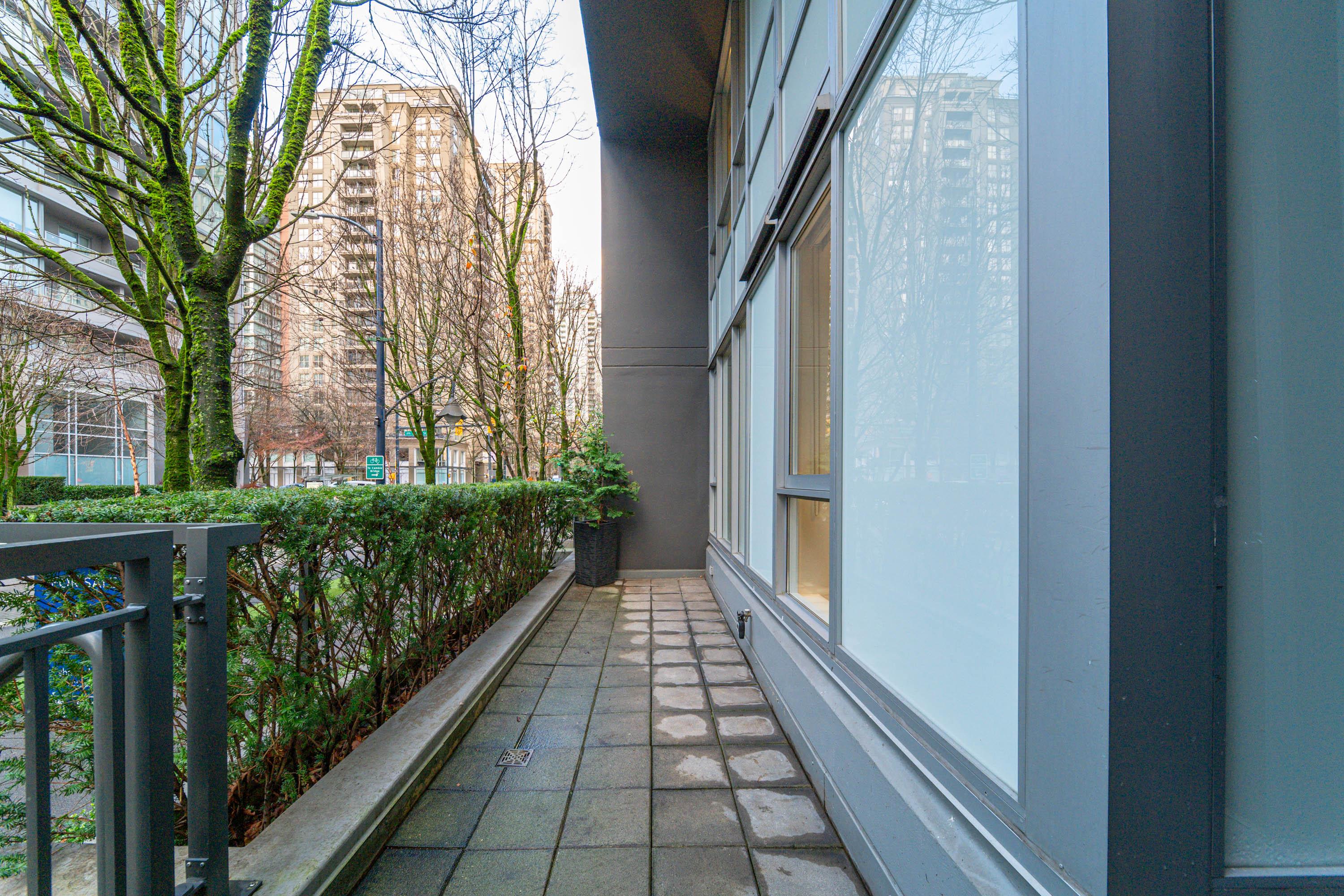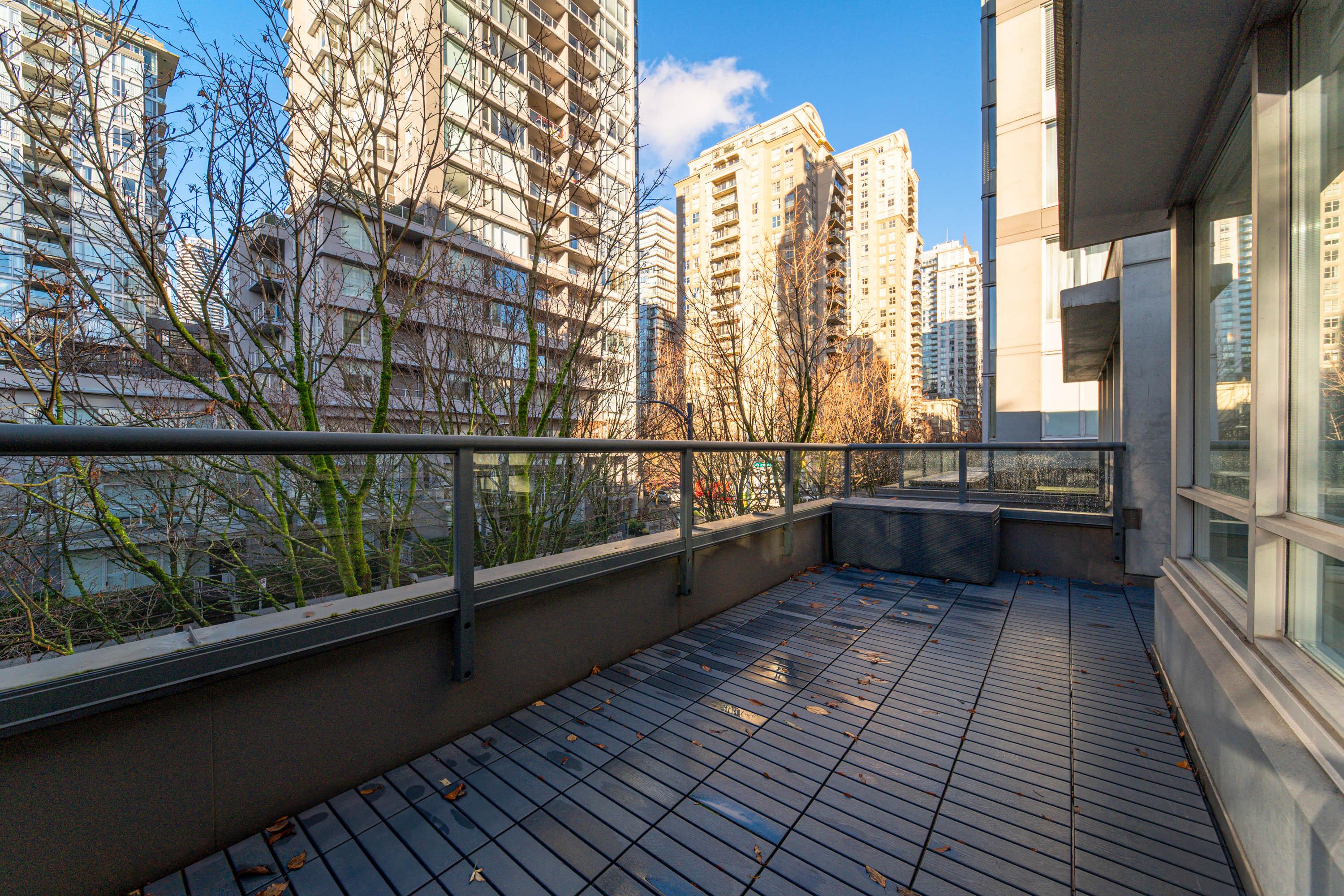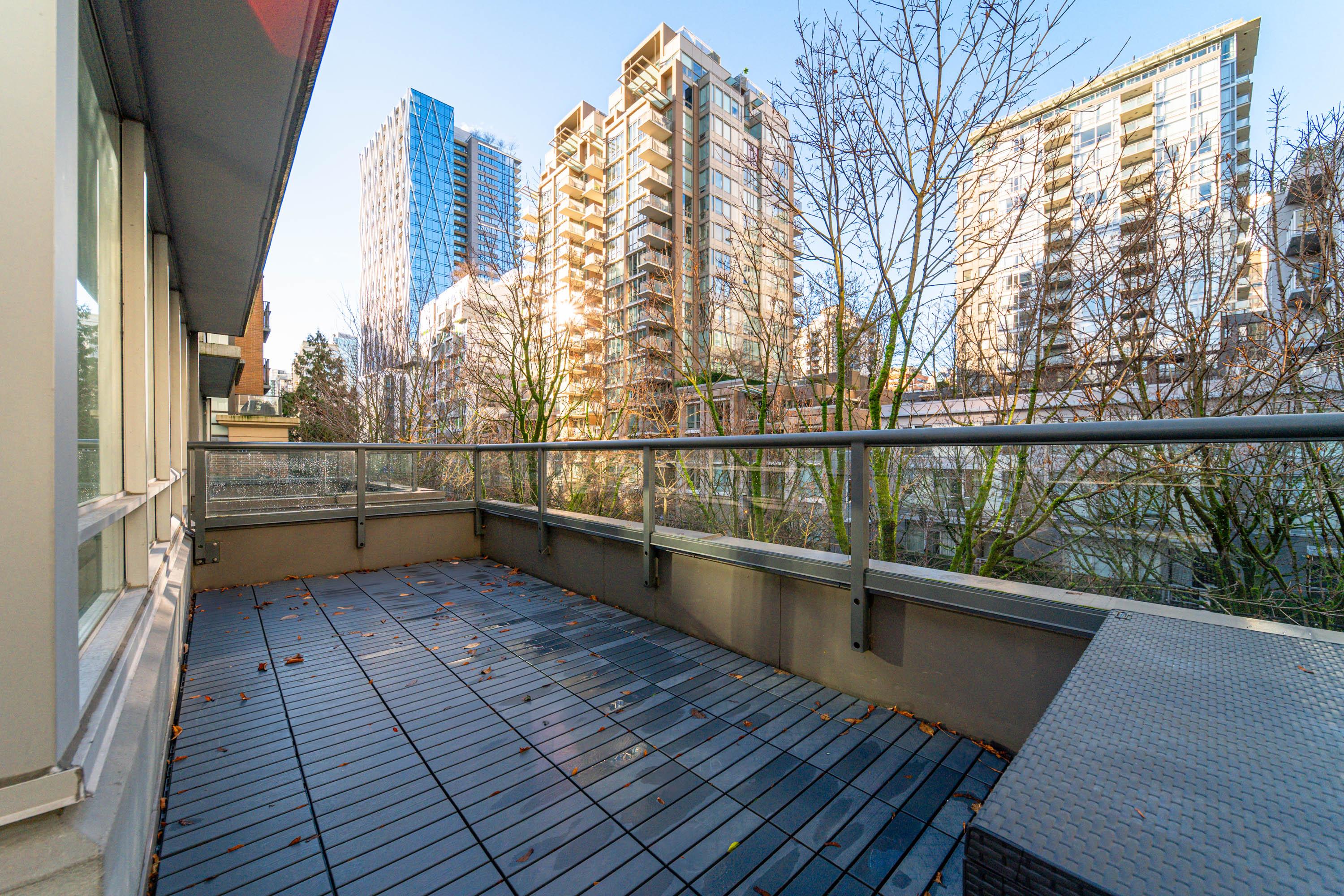 Modern Yaletown Living, Reimagined! This updated 3-level townhome combines sleek design with inviting warmth. Enjoy polished concrete floors on the main level, hardwood upstairs, and a spacious pantry/storage nook off the living room—perfect for organization or as a functional coffee bar. The open-concept living area flows to a large private patio, connecting to a serene courtyard and the building’s hot tub room. Upstairs, find 2 bright bedrooms and a stunning glass-encased 3rd level flex space with a wrap-around deck—ideal as an office, lounge, or 3rd bedroom. A true urban retreat steps from the seawall, dining, and shopping, Nesters Groceries, Choices Market, Shoppers Drug Mart, Rogers Arena & BC Place. 1 parking & storage included. School Catchment: Crosstown Elementary & King George Sec. Pets welcome (2 dogs or 2 cats), Rentals Welcome (No Short-term rentals)