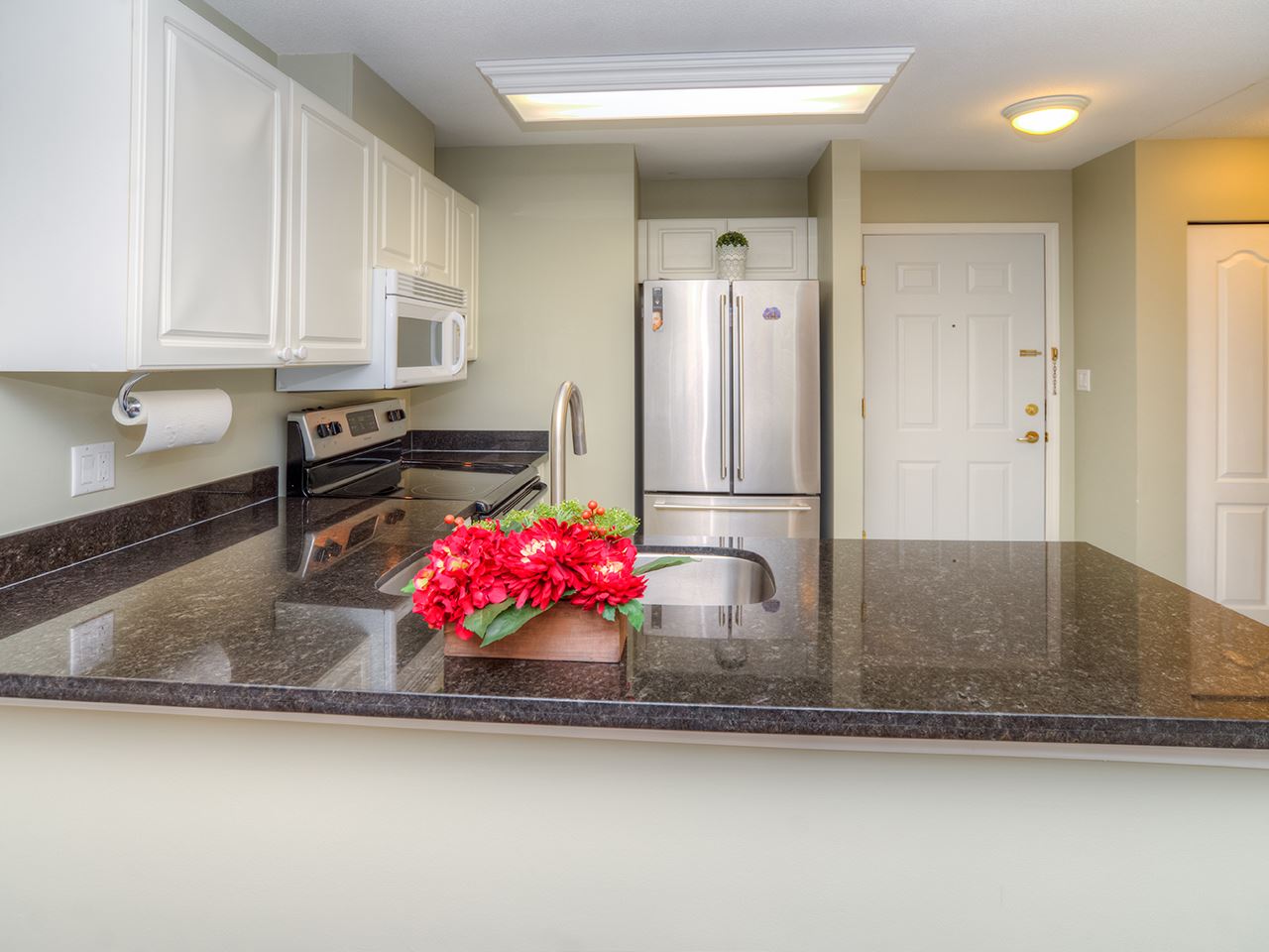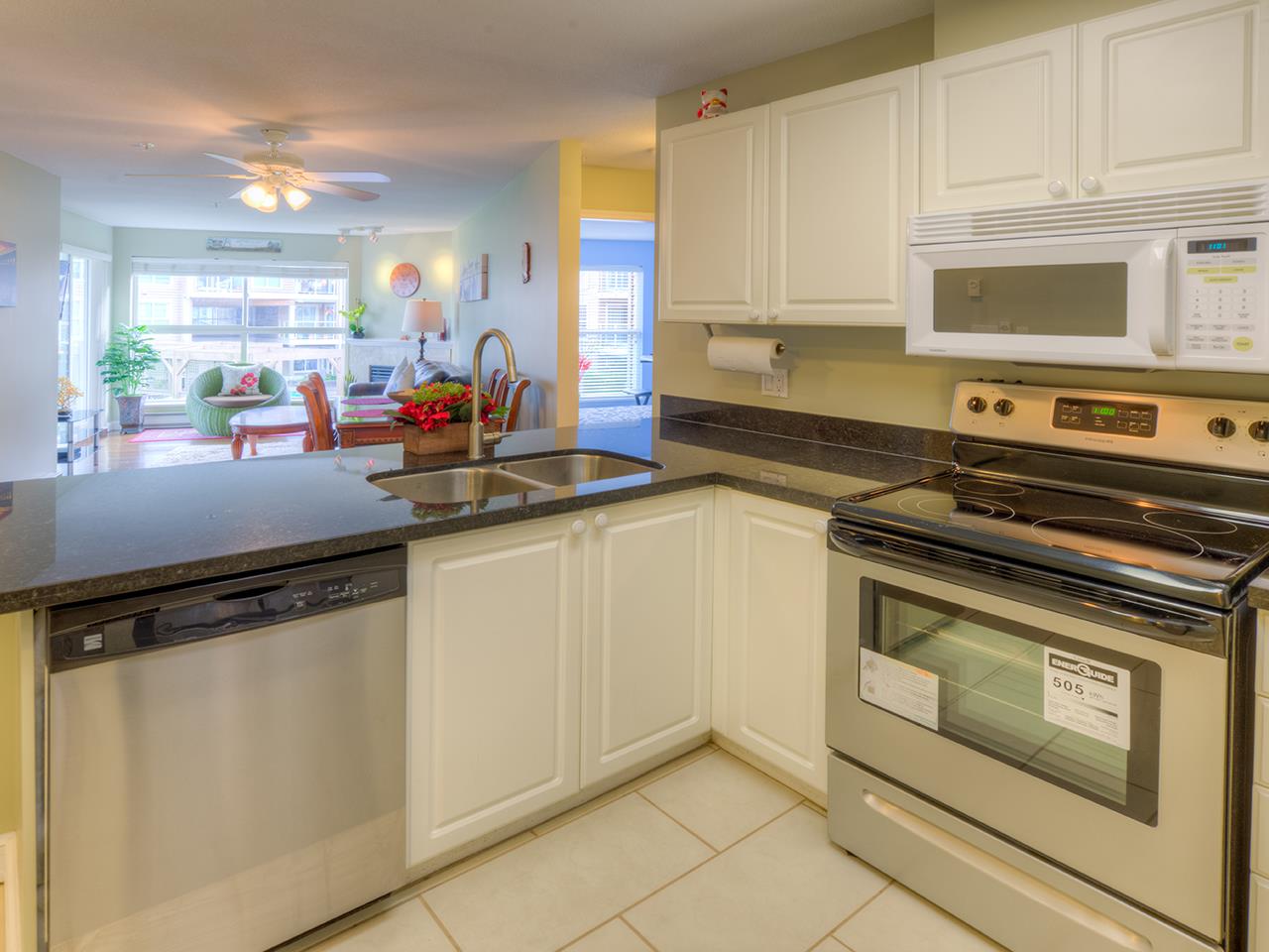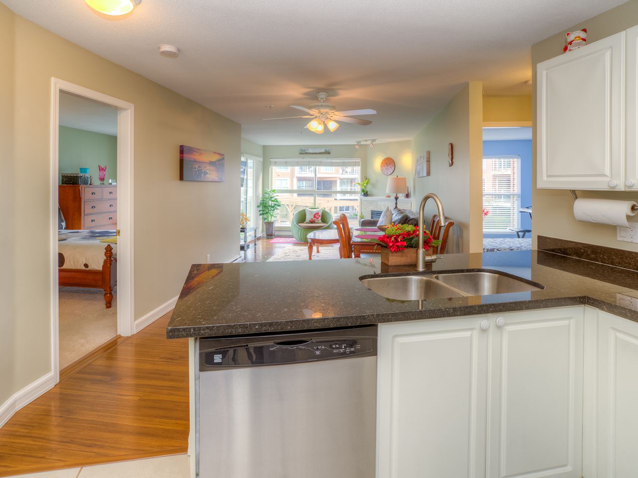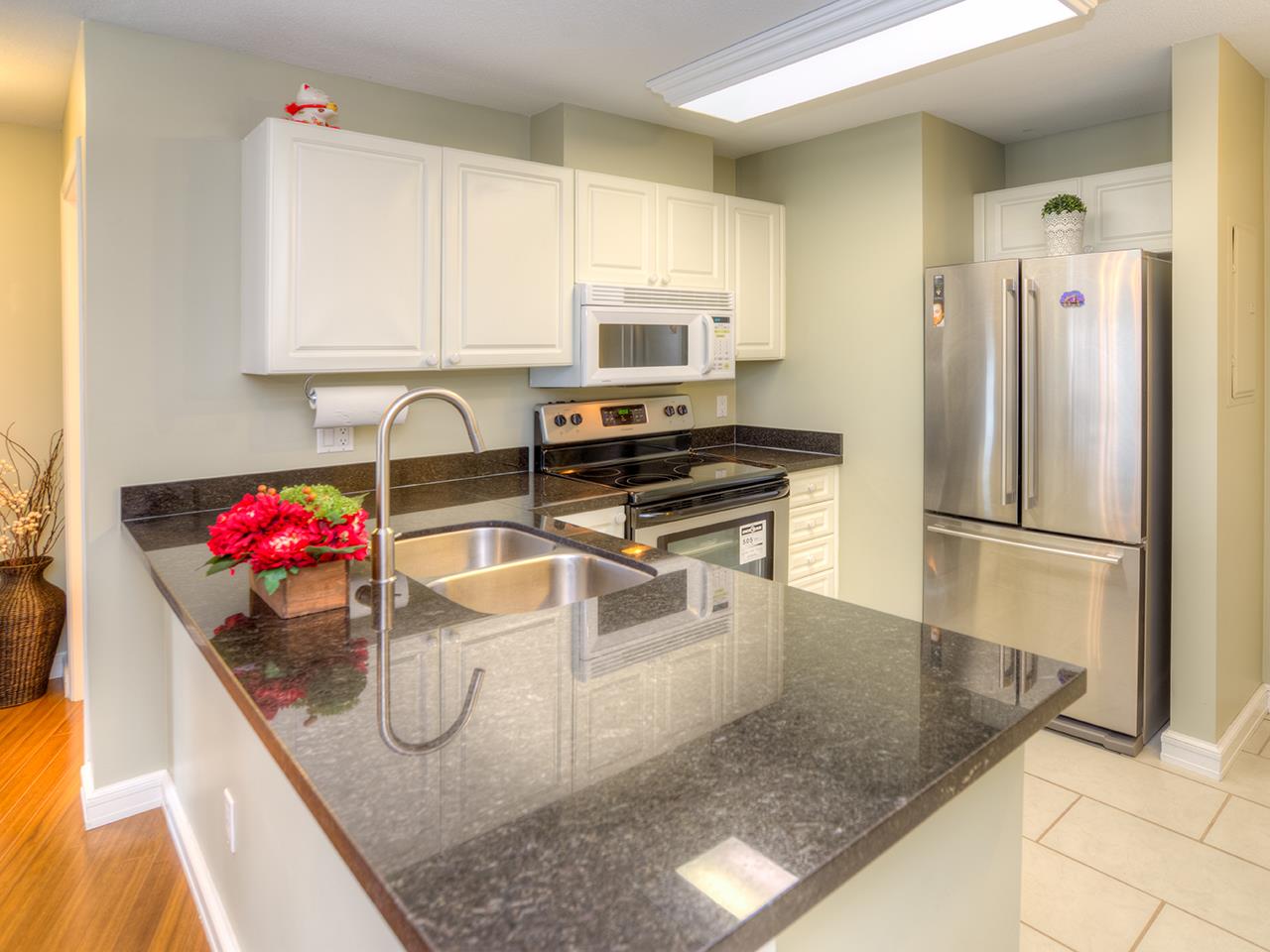 Come Home In Time for the Holidays! Rarely Available Bright Large 2 Bdrm Updated Apt with large covered balconies, at Waterside. Peaceful 888 sq. ft unit Overlooking courtyard and North East Exposure for optimum brightness and WATER VIEWS, Unit Features Spacious Layout, hardwood flooring, newer in-suite laundry, new tiling, updated kitchen with Brand New s/s appliances and Granite Countertops! Newer window covering, designer paint, and much much more. Building has very proactive caretaker on site. All assessment work has been paid and completed (2015), for brand new metal roofs. Walking distance to Schools Blair Elem & Burnett Sec. Worry-Free building Don't Miss this One!!!! Nothing to do, except Unpack and Move-In.
